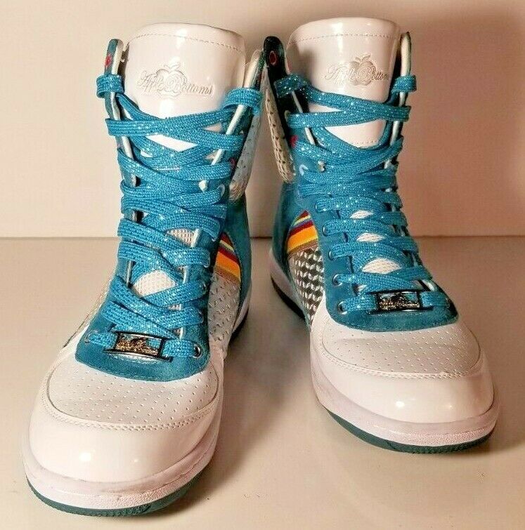 Apple Bottoms High Top Tennis Shoes Rianna Very Rare Blue sz 7.5 Womens. These are pretty clean, has a little scuffing and one small spot on the back, see pictures A2
