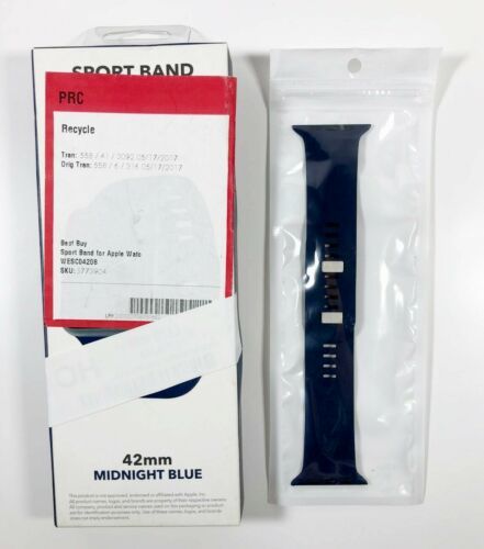 PRODUCT DESCRIPTION Secure a 42mm smart watch on your wrist with this Best Buy Apple Watch band. The sport design and midnight blue tone are appropriate additions to relaxing or business casual attire.โ ??Style: Silicone Sport Band for Apple Watch 42mm (SERIES 1 and SERIES 2) ??Style #: WESC04208 ??UPC: 894089002884 ??Color: Midnight Blue ??Silicone material ??Smooth, dense material drapes elegantly around your wrist. ? Copyright . All rights reserved. /