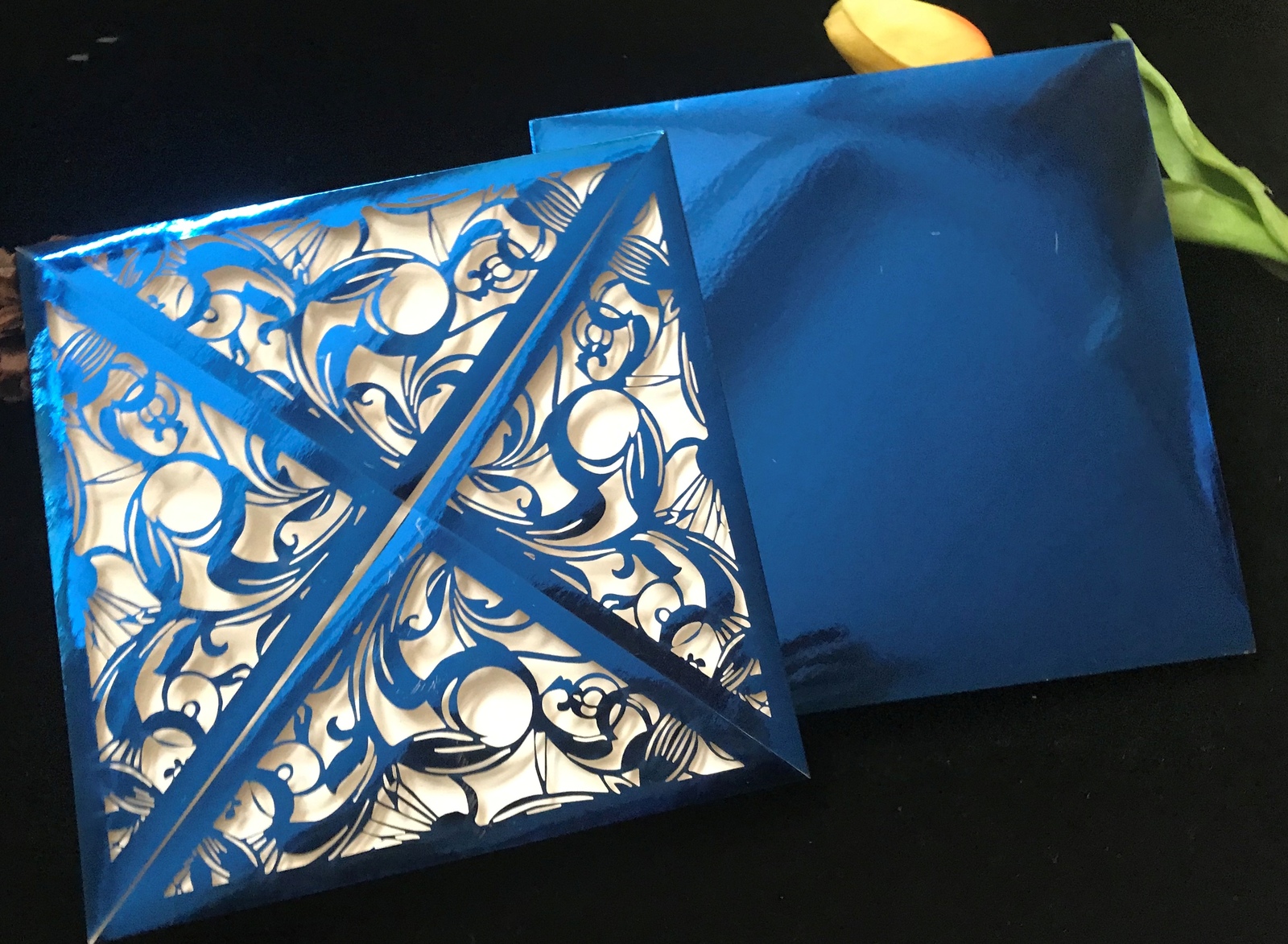 50pcs freeshipping 4folding laser cut wedding invitation,Lace wedding invitation,dark Blue wedding invitation,romantic wedding invitations