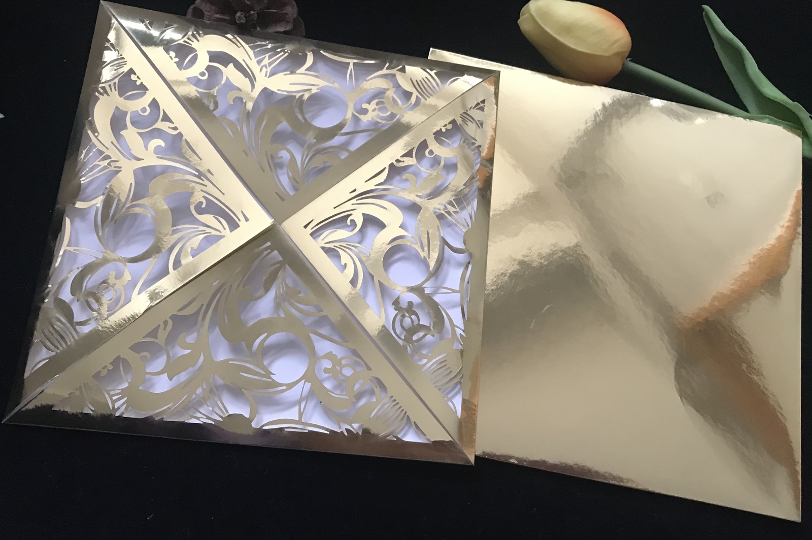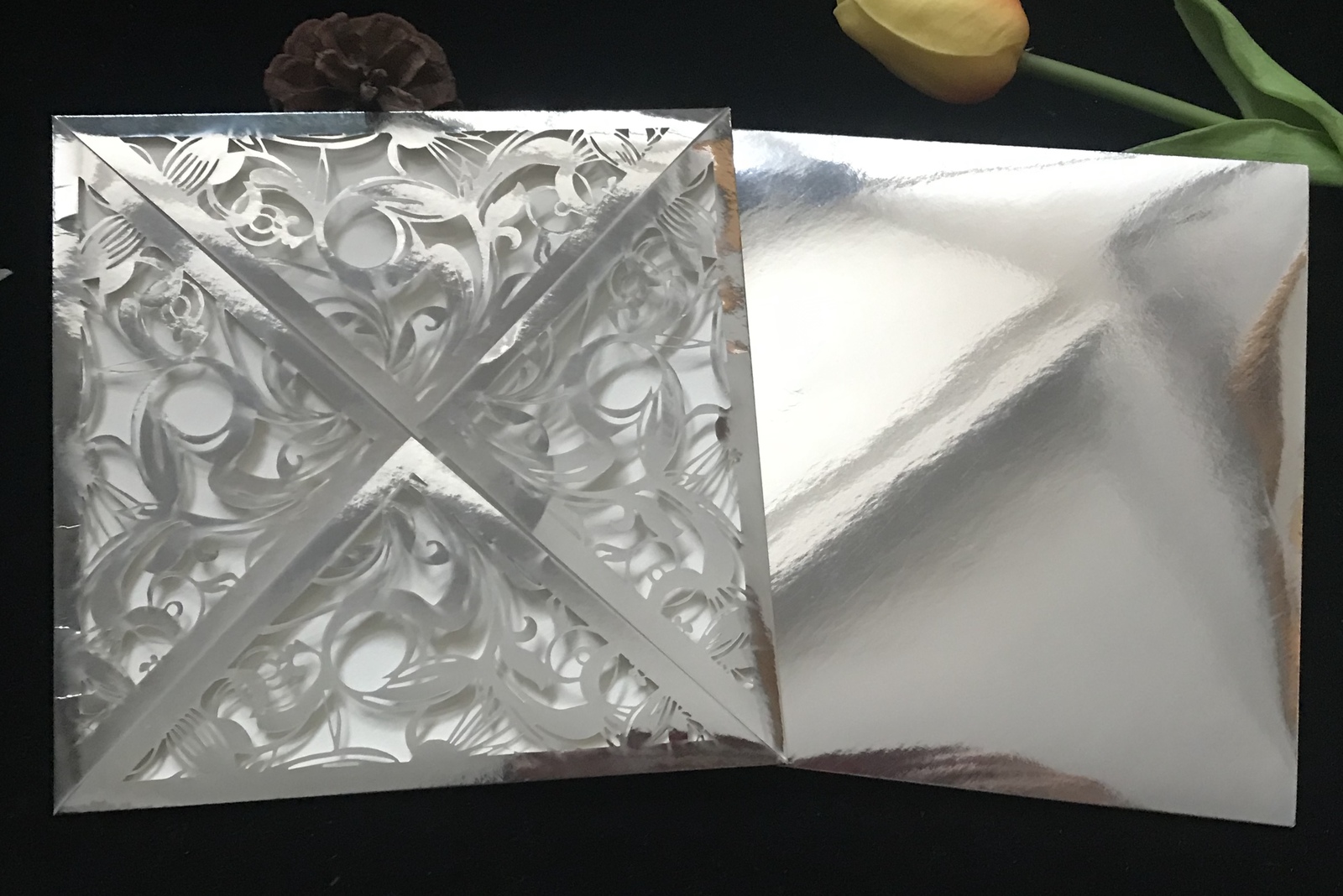 Metallic Paper Gold,Silver,navy blue on the photo,Only 50pieces invitation cards is US$59.8 Free Shipping,not include envelopes and insert cards;if you would like to have envelopes and insert cards with printing,ribbon etc special requirements,please contact us first,thank you so much;We will service for you!