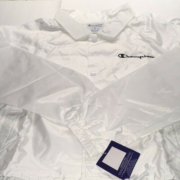 New Champion Women's Cropped Coaches Jacket with Embroidered Logo White Size XL