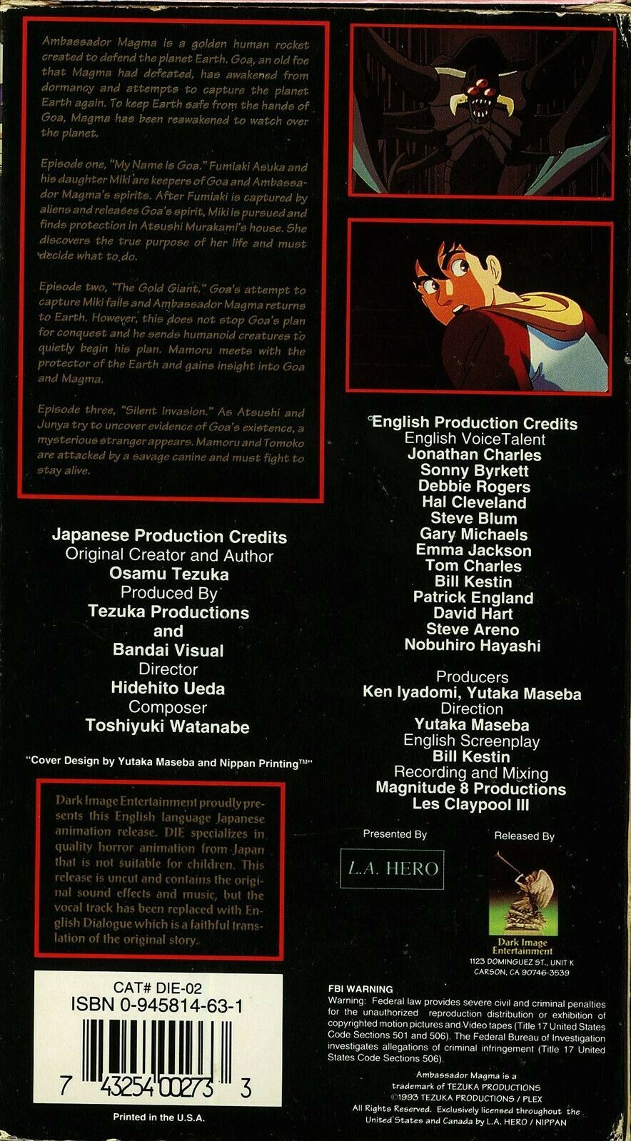 AMBASSADOR MAGMA 1993 OVA EP 1-3 VHS LA HERO VIDEO ENGLISH DUBBED TESTED
