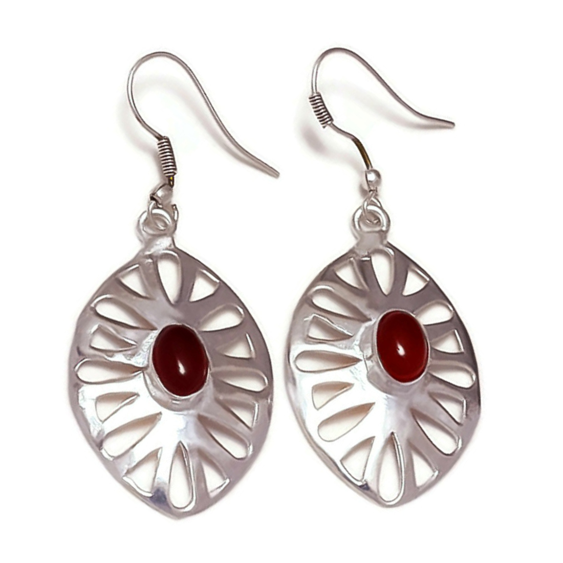 Carnelian Gemstone 925 Silver Overlay Handmade Filigree Drop Dangle Earrings