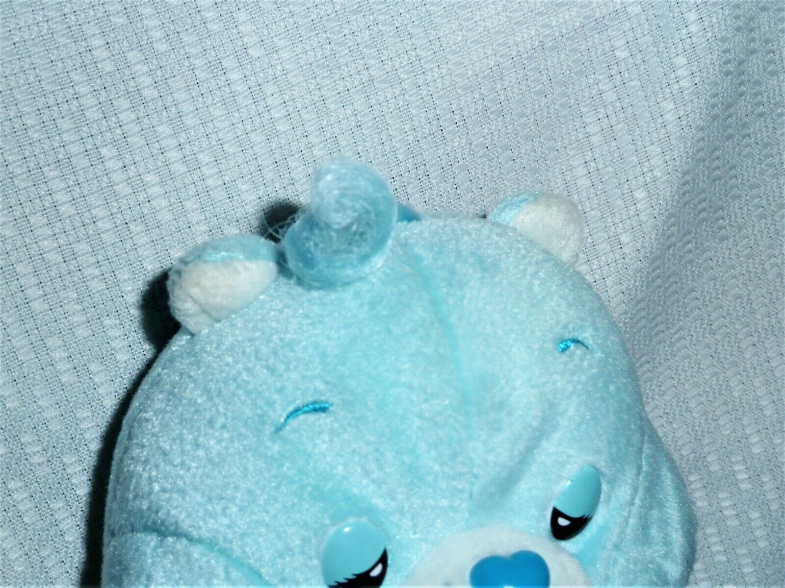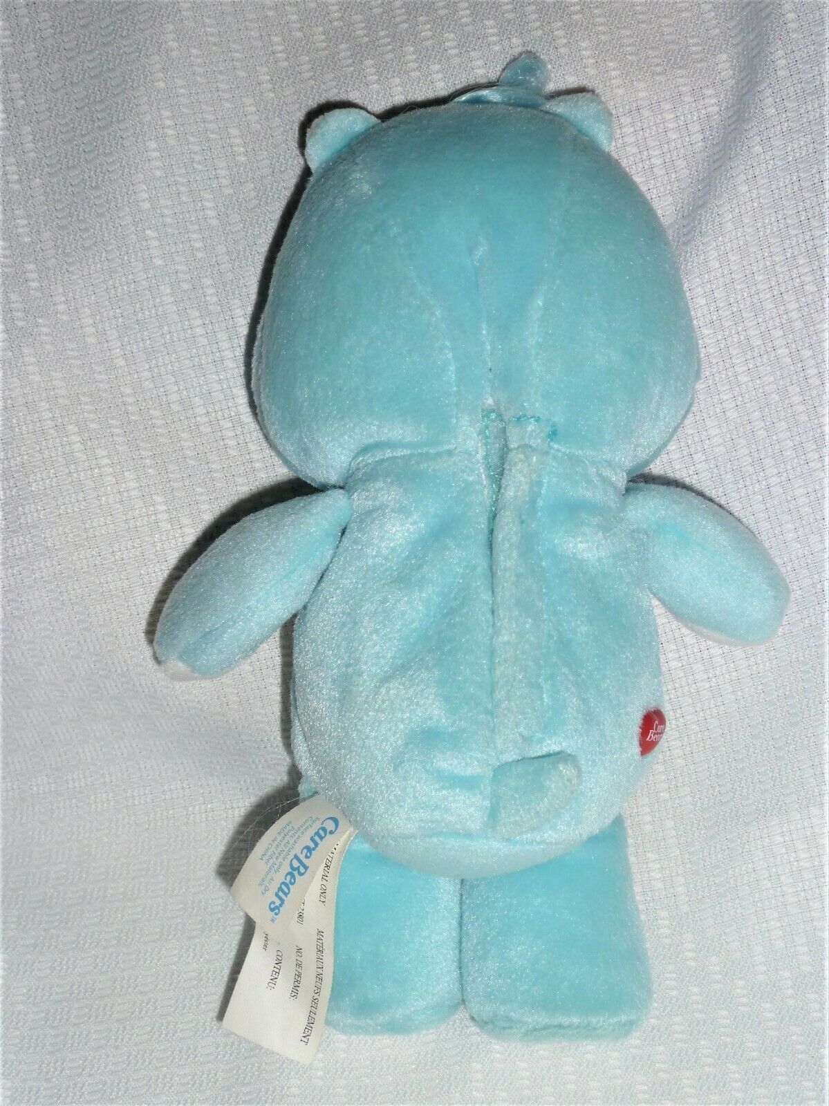 Bum heart lithos very good, Hair curl/tuft excellent, no eye scratches. 9" tall. Talks - says phrases: Hi, I'm bedtime bear; I'd rather be sleeping; Did you need a bedtime hug? Goodnight, sleep tight, no rips, stains or holes. Works good, batteries not included. Ships from a Non-smoking and pet-free warehouse.