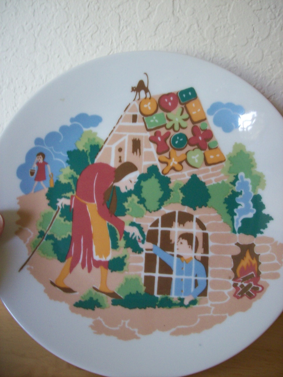 Alt Tirschenreuth 1838 “Hansel and Gretel” Plate. In excellent condition, colorful plate has Hansel and Gretel with evil witch. Back reads "Each day the wicked witch said, "Well, well, not quite fat enough I see".