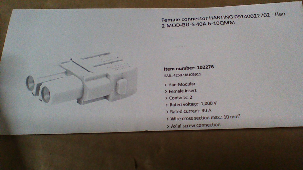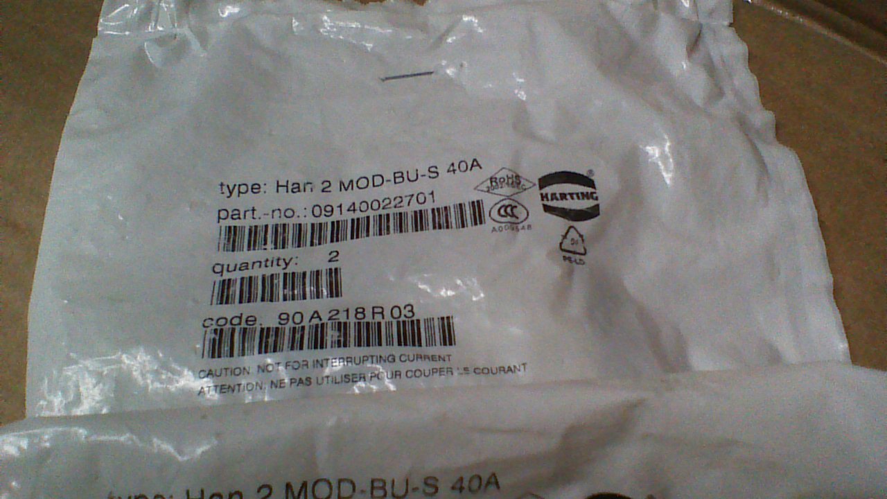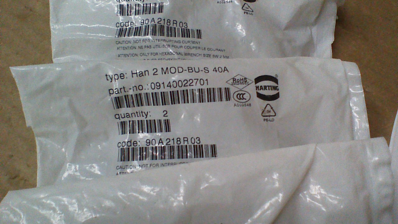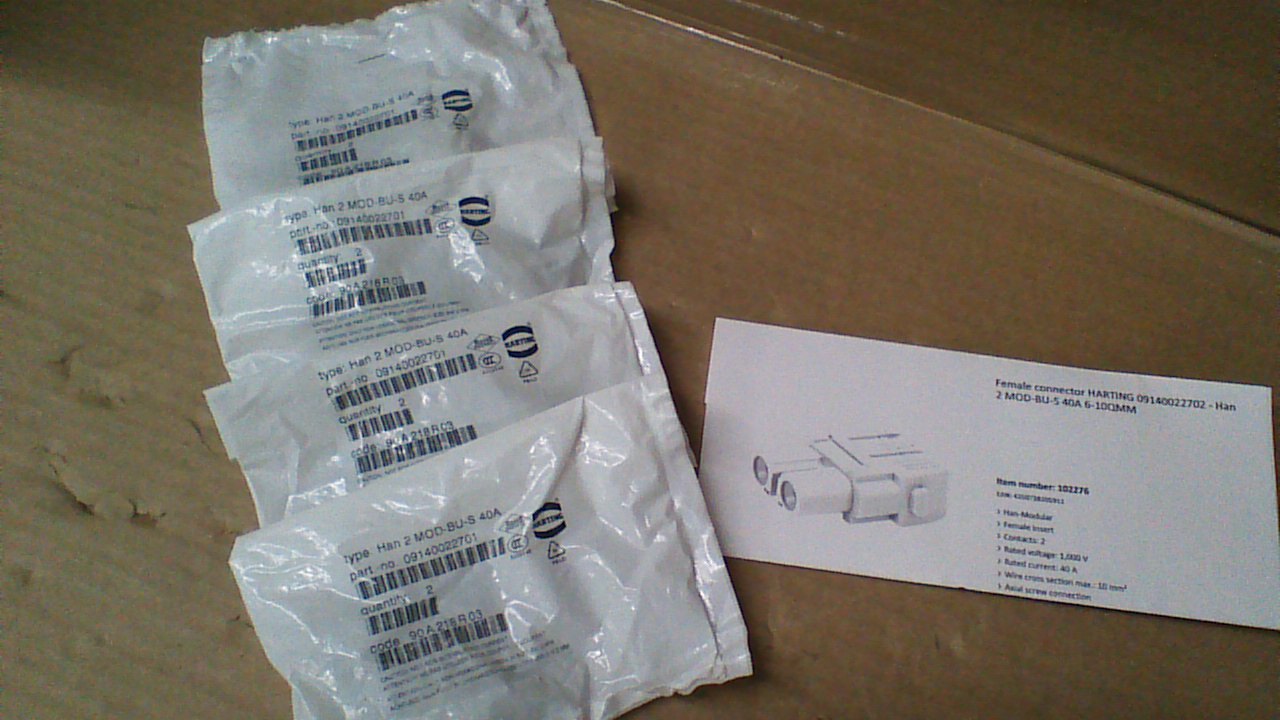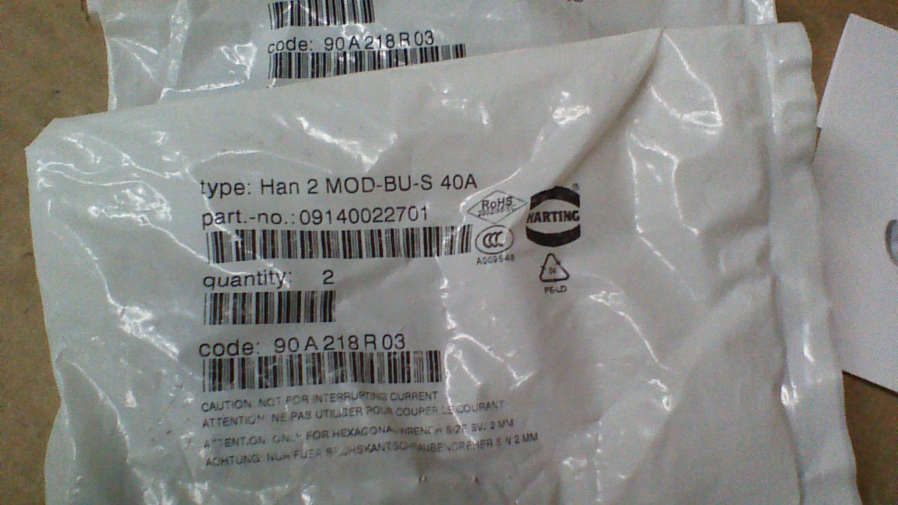(8) NEW HAN 2 MOD-BU-S-40A /09140022701 FEMALE (2) CONDUCTOR 40A/1000V CONNECTOR
