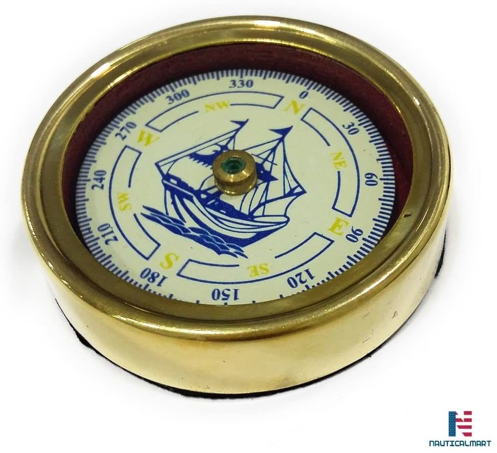 The compass measures 2 inches in diameter and is 1/2 inch thick.