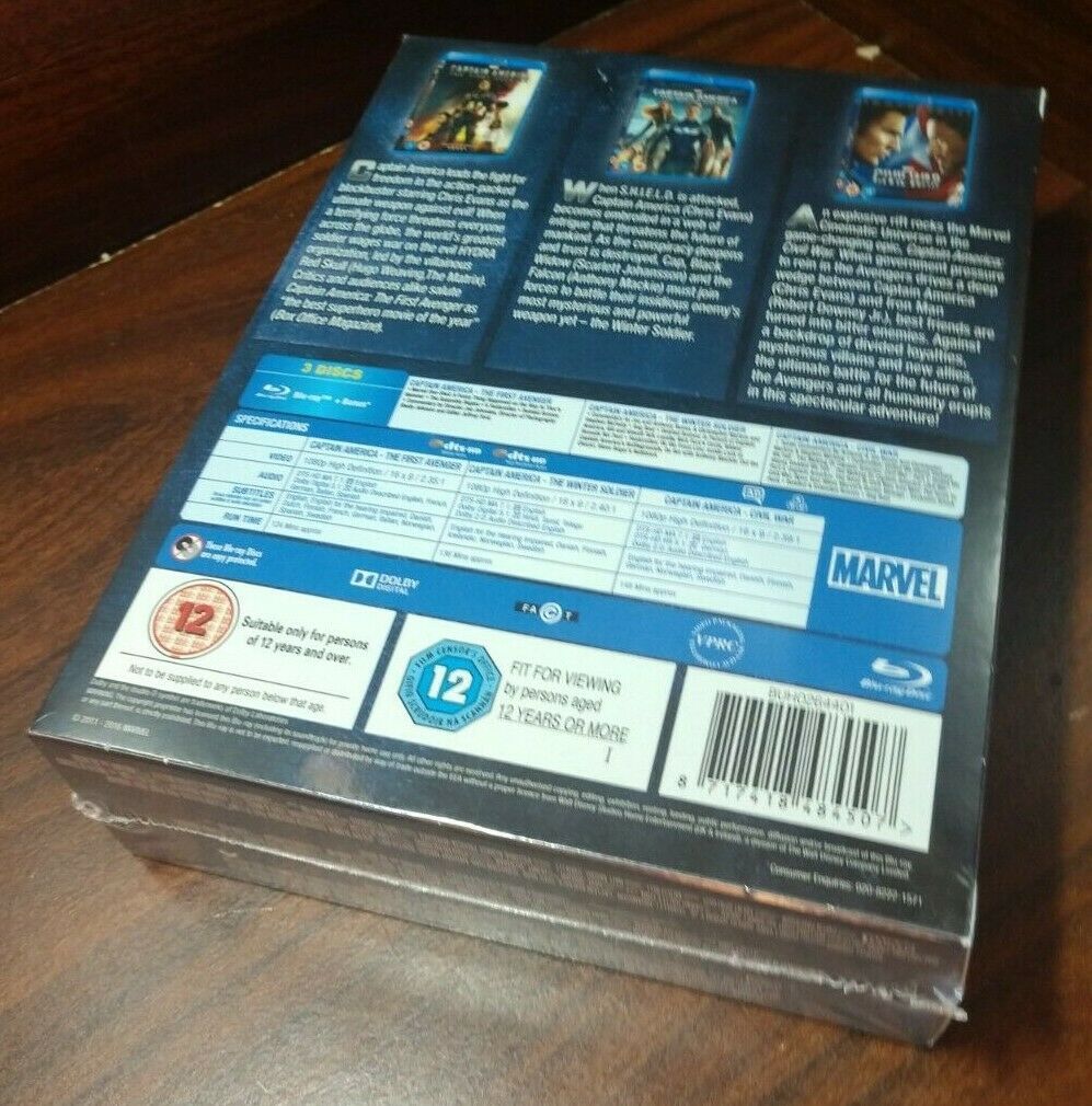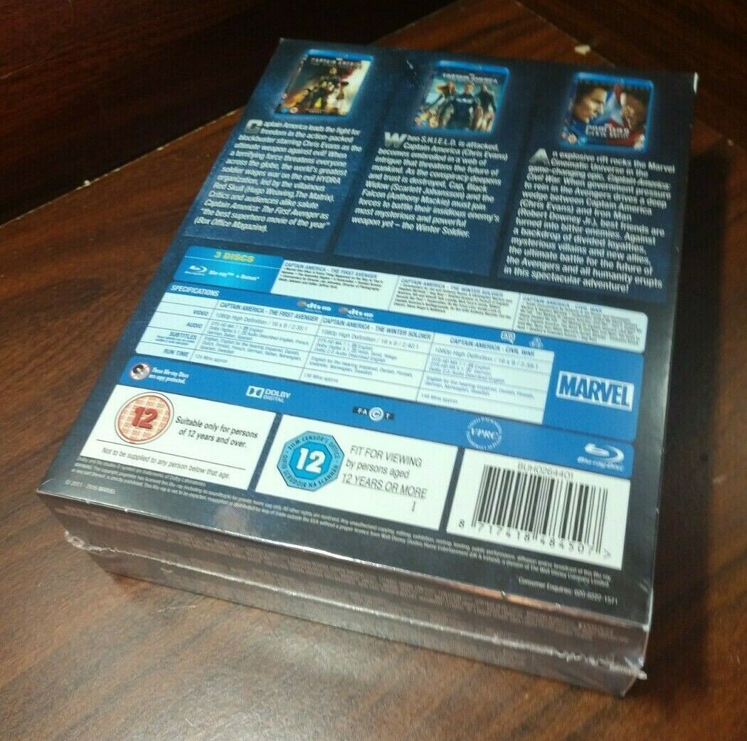 Captain America 3 Movie Collection (Blu-ray,REGION FREE) Slipcover-NEW-Free S&H