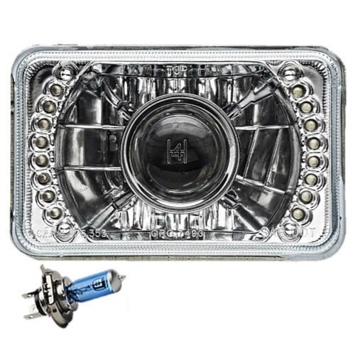 6" CRYSTAL CLEAR HALOGEN WHITE LED HALO PROJECTOR HEADLIGHT BULB. INCLUDES ONE HIGH / LOW BEAM HEADLIGHT WITH SUPER WHITE HALOGEN H4 55/60W LIGHT BULB. THESE HAVE THE