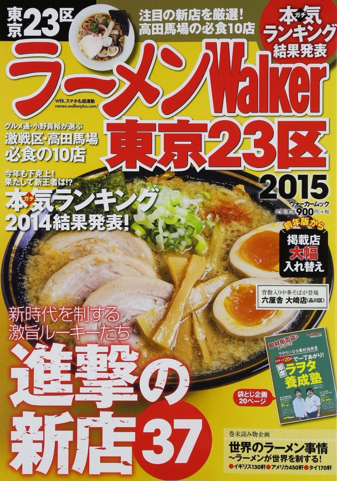 * of advance new stores forefront 2014 From the new stores in 2014 open, carefully selected really delicious shop. Including the attention super rookie of, food, the third of the bone, followed by chicken, pork, Taiwan Mazesoba and shrimp Dashibumu, it will introduce the latest trends of the 23 wards ramen such as the reinstatement of Seabura. * battleground! Takadanobaba ramen MAP Large dissected Takadanobaba is a ramen battleground! And noodle shop MAP, to gourmet critic Ono InHiroshi Mr. 10 cups of local-Takadanobaba resident. I will try to immediately Eating out? * hundred noodles people and readers chose Tokyo ramen seriously (Gachi) rankings Hundred noodles people and readers have voted Ramen Walker Grand Prix 2014. And 20 shops were the pinnacle of Tokyo's 23 wards, large announced the new store 10 best of open 2014! * Japanese ramen rule the world! Now walk to eat ramen ramen is a large boom! Around the world abroad, Shin-Yokohama Ramen Museum Mr. Masahiro Nakano report the latest situation. * shalt eat also bag closed planning coverage denial shop! Instant Rawota training school Ramen and Walker hundred ramen critic Takashi Yamamoto is a noodles people, Mr. Takashi Tanaka Sunny Day service, thorough teaching what any store to become familiar to more noodles I should eat. Hundreds cups also need not eat, if you eat only 20 cups in four steps until deep knitting from Fundamentals, you and the other splendid Rawota (= ramen geeks)! * preservation version of Tokyo's 23 wards delicious store catalog 246 hotels Really delicious shop just recorded hotels 246 of the 23 wards. It is easy-to-find area-specific publication. * Tokyo ramen route map MAP * ramen Glossary