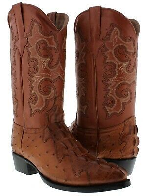 Mens Cognac Cowboy Boots Alligator Ostrich Pattern Leather Western J Toe Bota