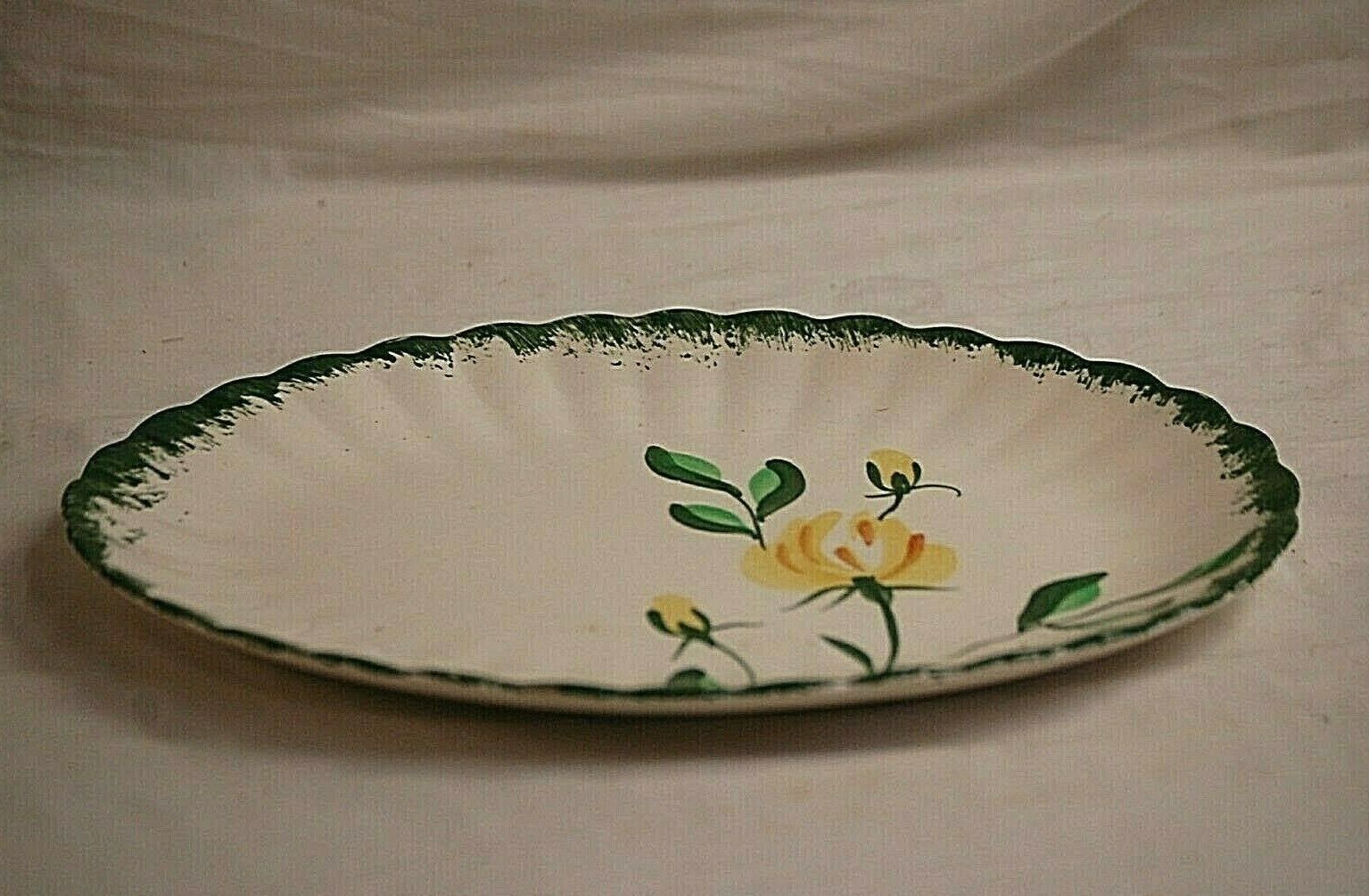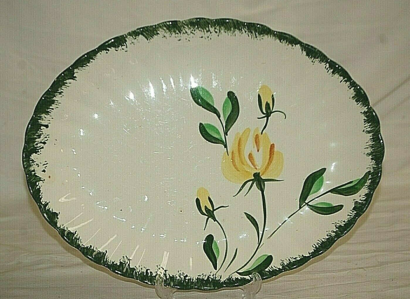 Yellow Iris Blue Ridge Southern Pottery Oval Serving Platter Vintage Dinnerware