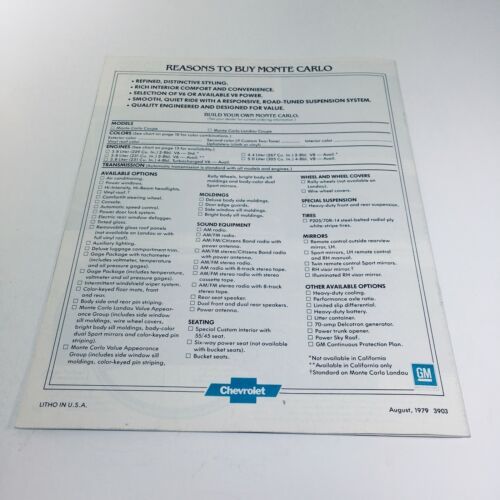 1980 Chevrolet Monte Carlo Turbocharge V6 - August 1979, 3903 Car Sale Brochure