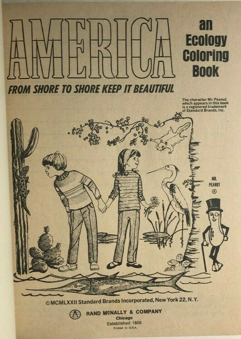 AMERICA an Ecology Coloring Book (1972) Mr. Peanut Rand McNally SC unused