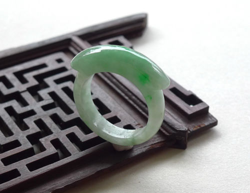 Certified Natural A Green Jade jadeite Handmade Saddle Ring US Size 5.0