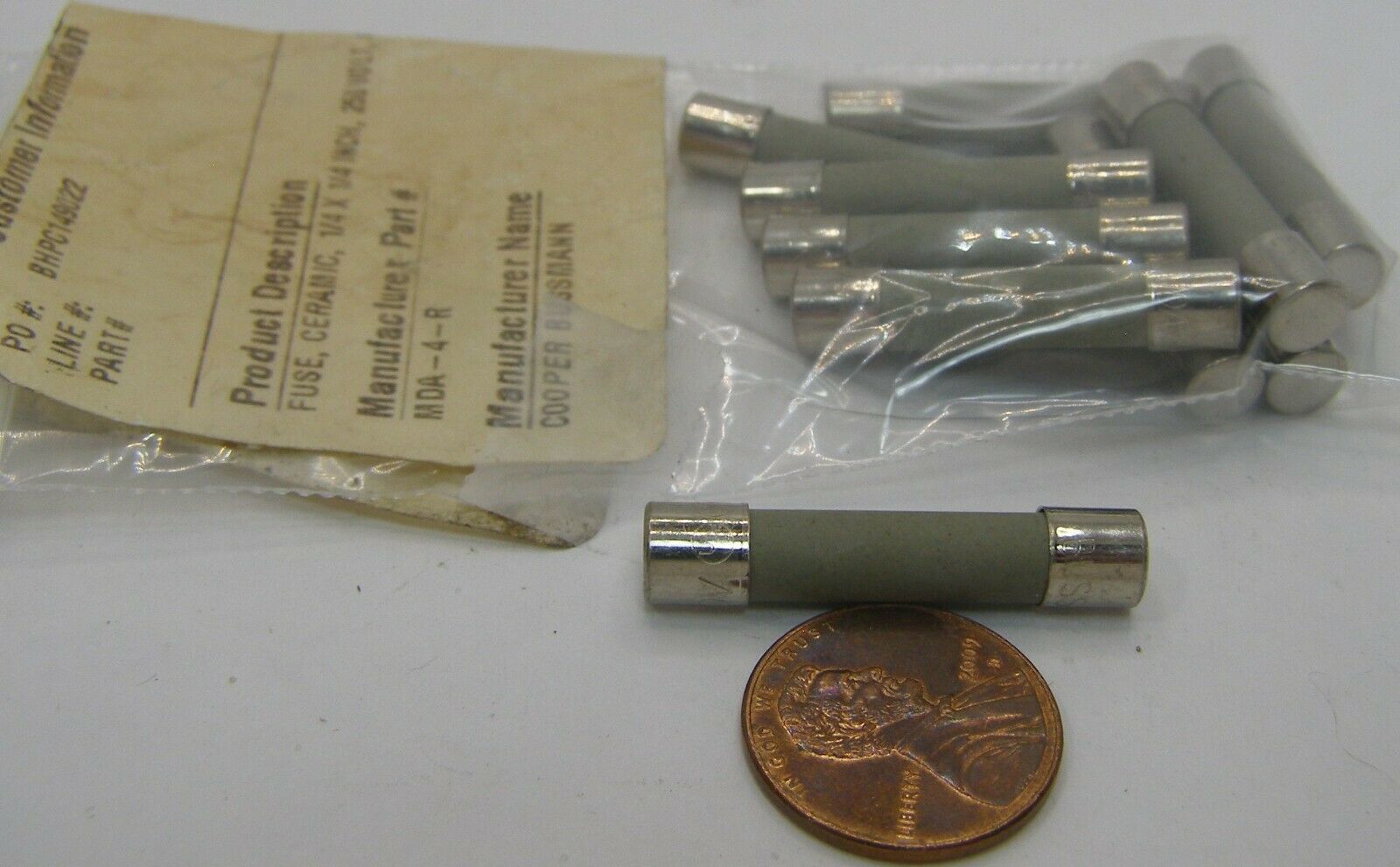 Ten Buss Cooper Bussman Ceramic Fuses MDA-4-R 1/4 x 1/4 250v 4a 10 count