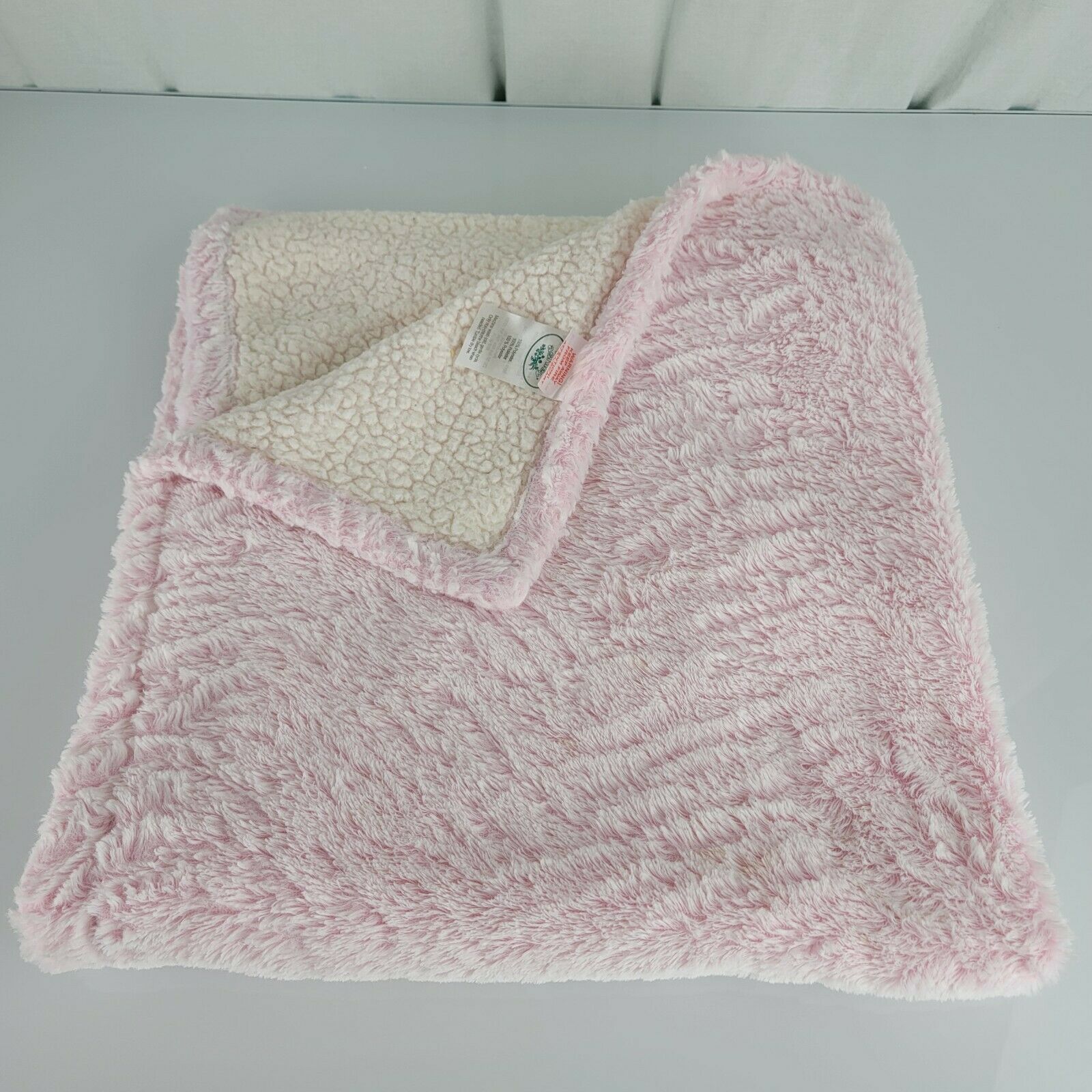 Laura Ashley Baby Girl Pink Cream Ivory Furry Sherpa Plush Soft Blanket 33 x 34"