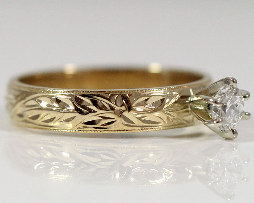 0.30CT ROUND DIAMOND 14K YELLOW GOLD HAWAIIAN STYLE BAND ENGAGEMENT RING SIZE 6.5