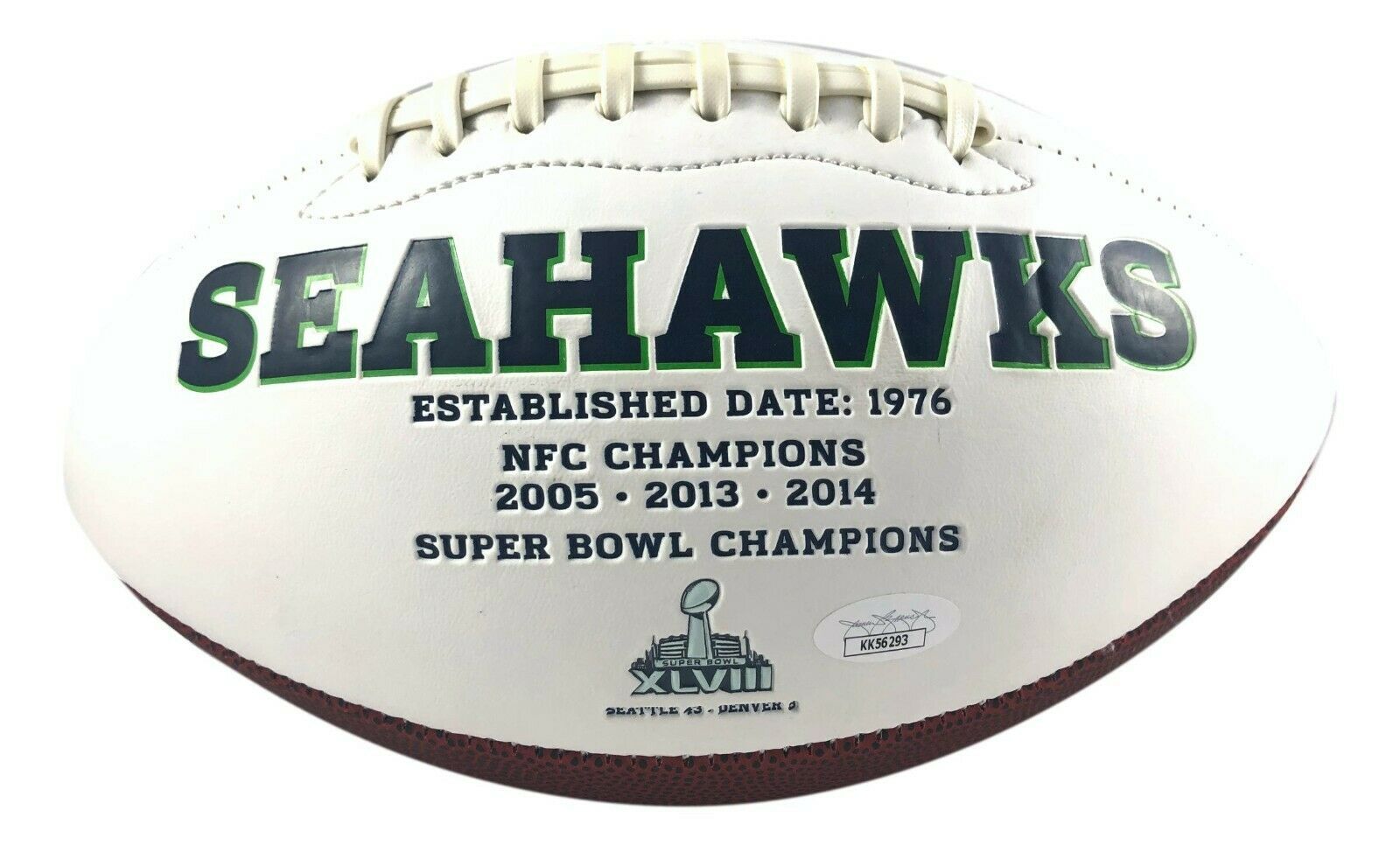 LOOKING FOR THE NEXT BIG THING TO ADD TO YOUR MEMORABILIA COLLECTION? WELL THIS IS IT! Richard Sherman HAND SIGNED Seattle Seahawks WHITE PANEL Super Bowl Champions FOOTBALL!! THIS IS A MUST HAVE FOR ALL Richard Sherman AND Seattle Seahawks FANS' MAN CAVES, OFFICES, GAME ROOMS AND LADY LAIRS!! This item has been certified authentic by one of the most reputable and recognized authenticators in the business today, JAMES SPENCE AUTHENTICATION (JSA). This item comes with a JSA numbered tamper-proof authentication sticker and COA card that can be reviewed on their website 24/7/365 to guarantee it's authenticity.