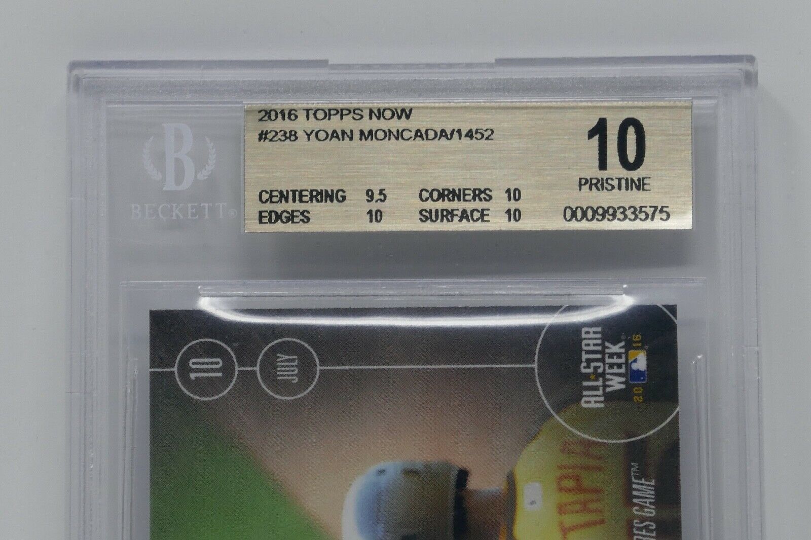 2016 Topps Now #238 Yoan Moncada/1452 Rookie Beckett 10 PRISTINE