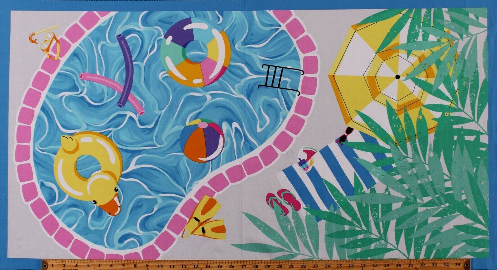 23" X 44" Panel Pool Noodles Tubes Summer Pool Party Cotton Fabric Panel D784.69