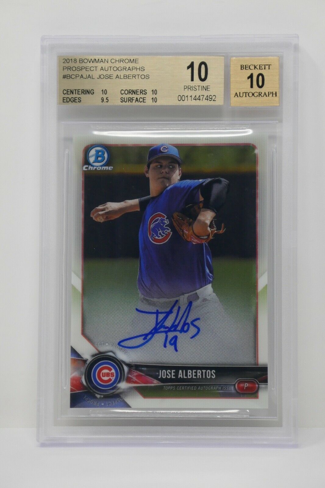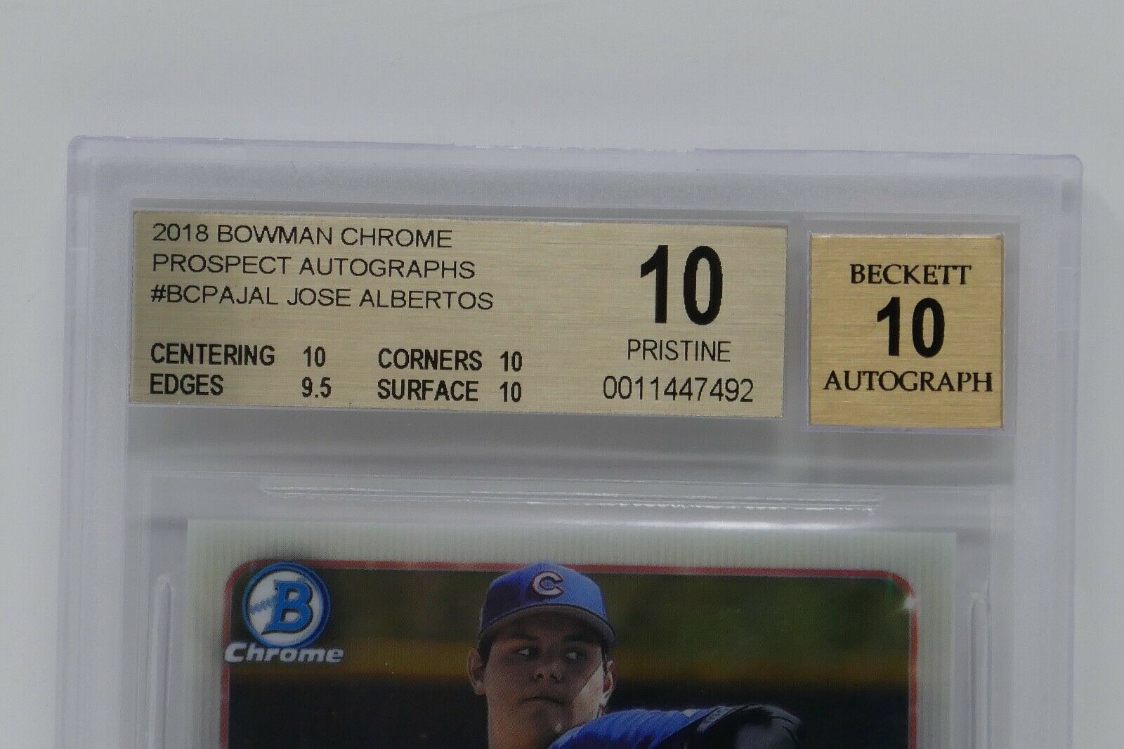 2018 Bowman Chrome Prospect AU Jose Albertos Rookie Beckett 10 PRISTINE