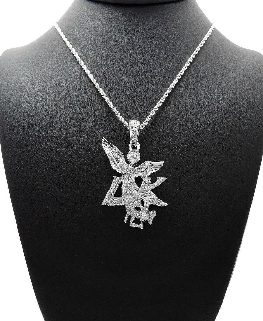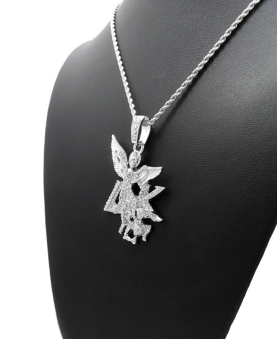 Saint Michael Archangel Pendant Silver-Tone Round Crystals Rope Chain Necklace