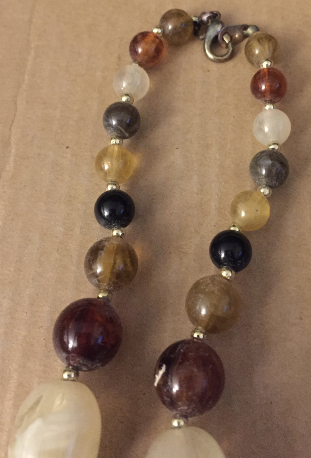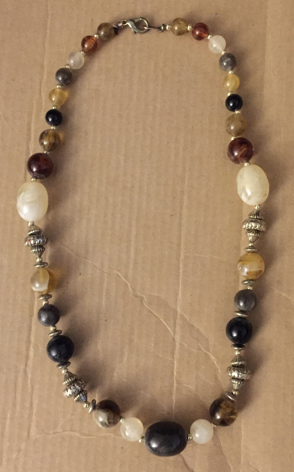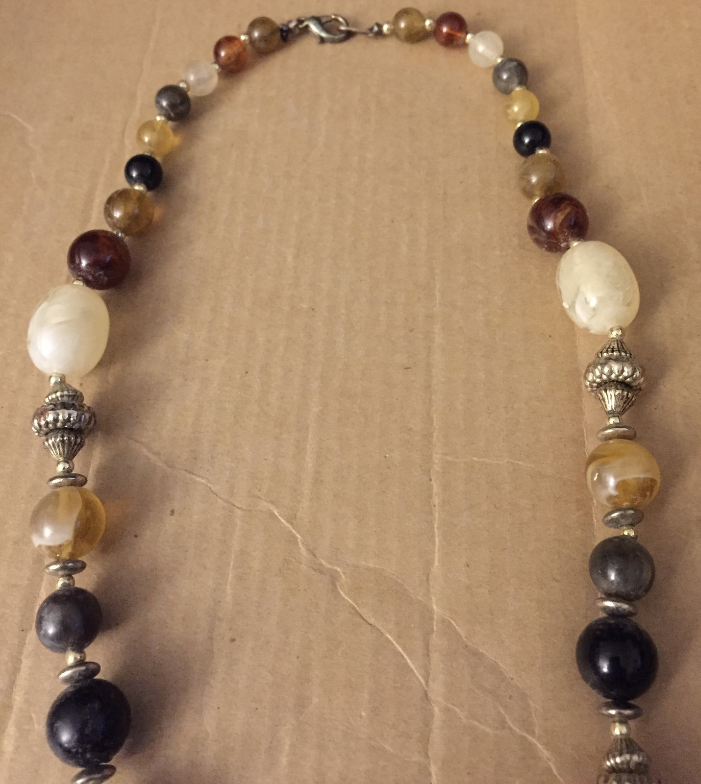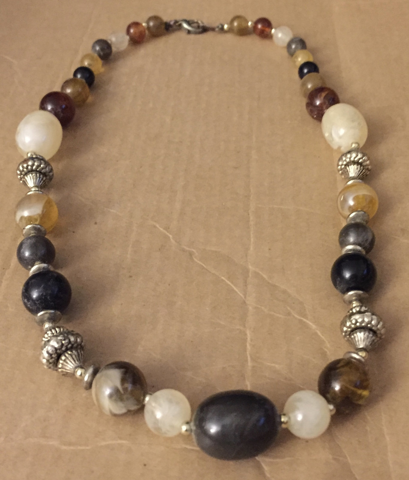 Vintage Hand Strung 1940s Swirled Art Glass 1970s Silver Beads Lobster Claw Clas