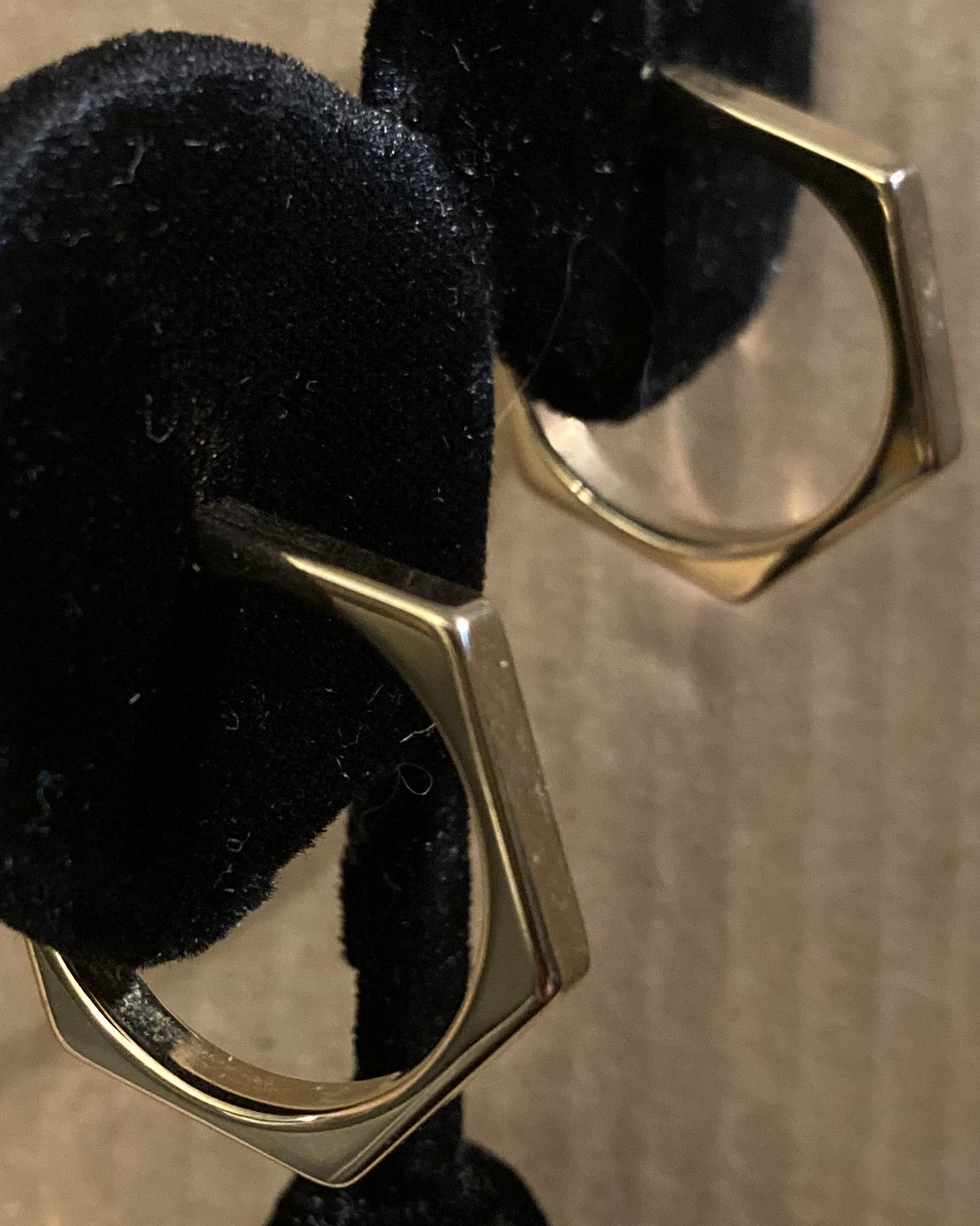 Vintage 1970s Gold Plated Five 5 Sided Square Edge Geometric Minimalist Hoop Pos