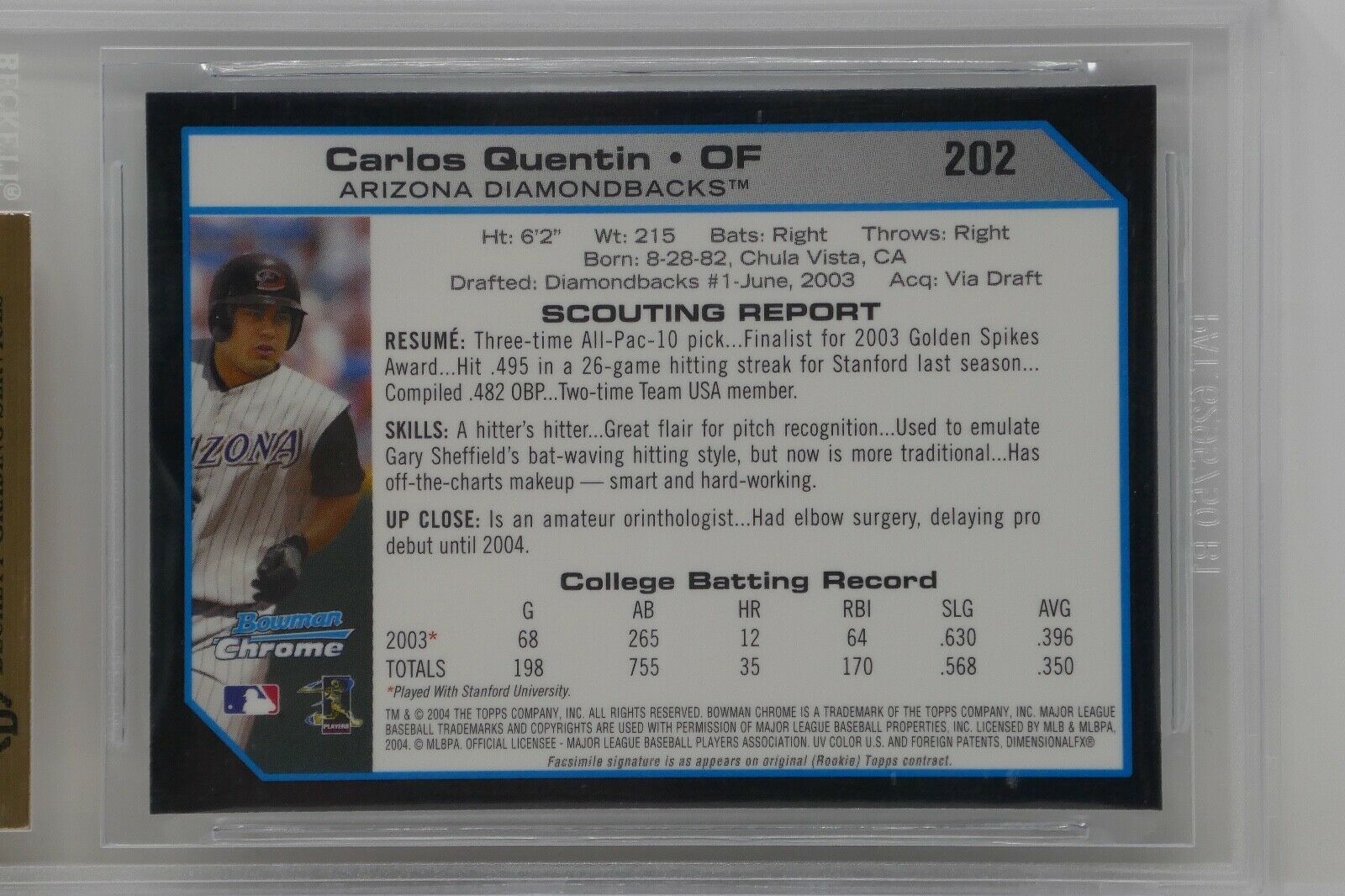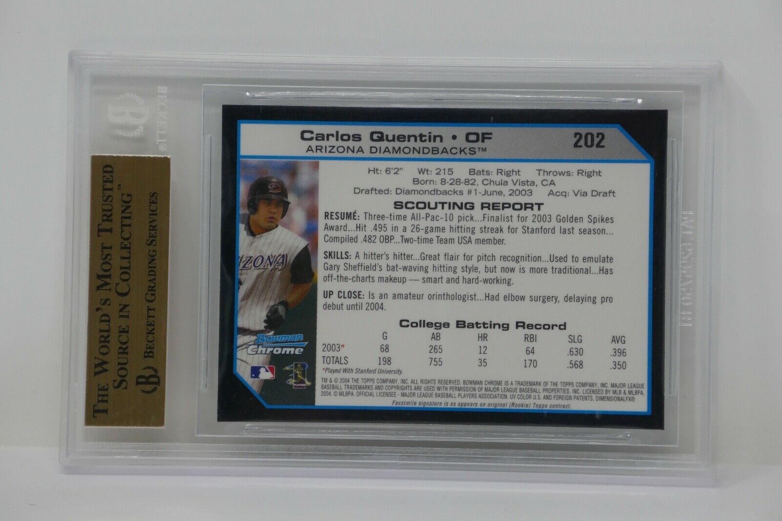 2004 Bowman Chrome #202 Carlos Quentin Rookie Beckett 9.5 GEM MINT
