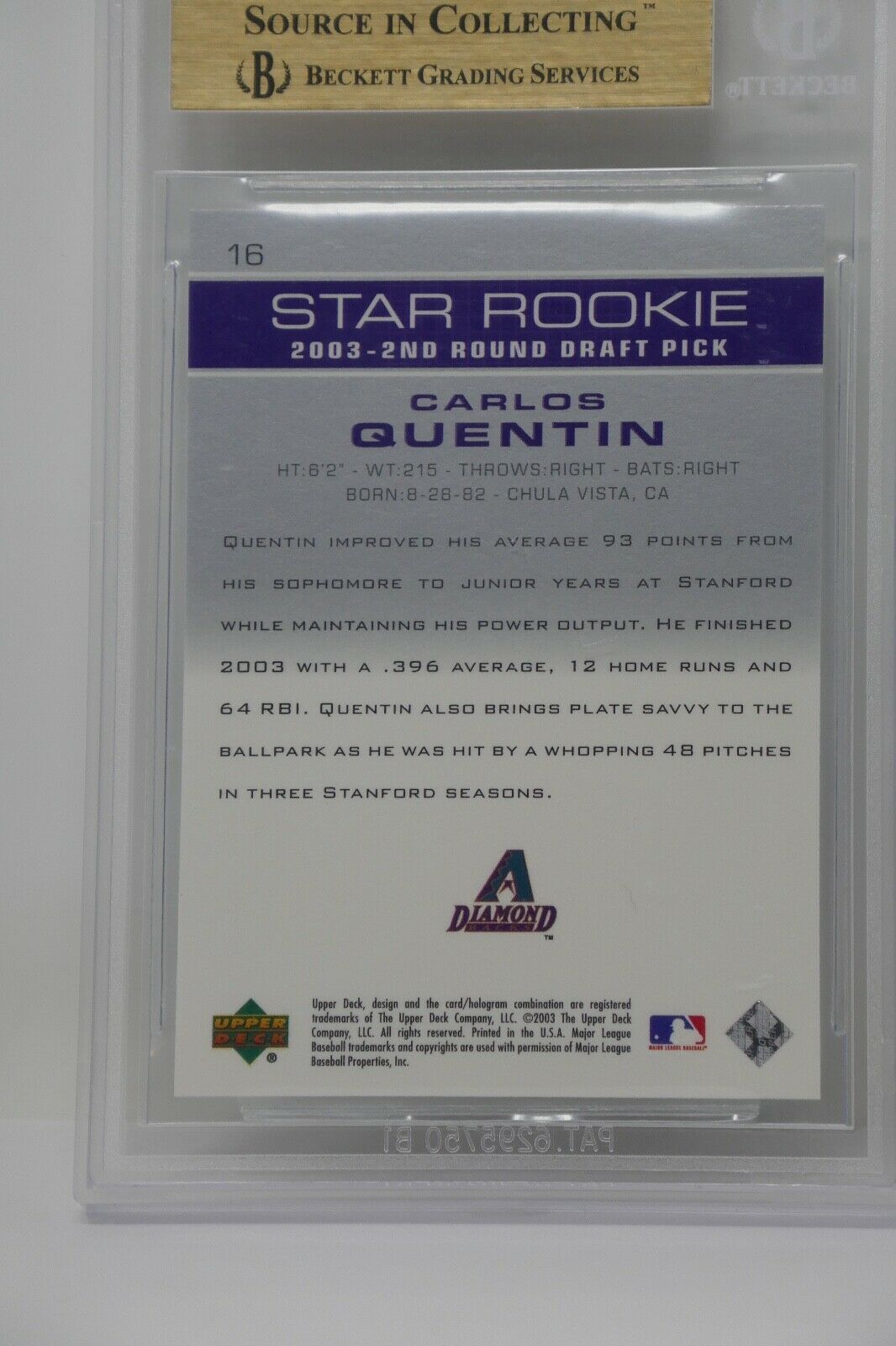2003 Upper Deck Prospect Premiere #16 Carlos Quentin Rookie Beckett 10 PRISTIN