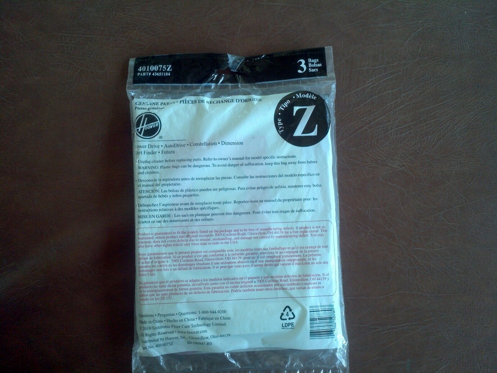 Genuine Hoover Filter Bags Type Z Package 4010075Z
