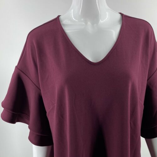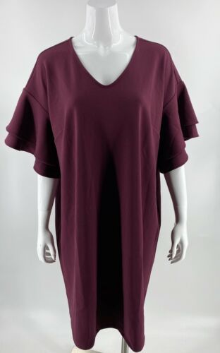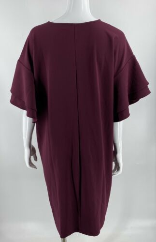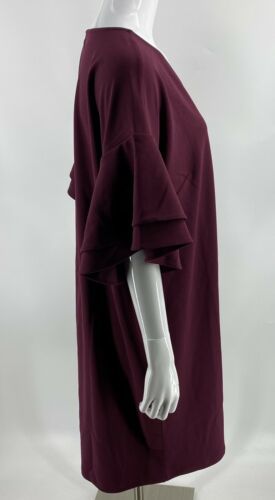 Belle Kim Gravel Shift Dress Sz XL Burgundy Red Ruffle Sleeve V Neck Womens NEW