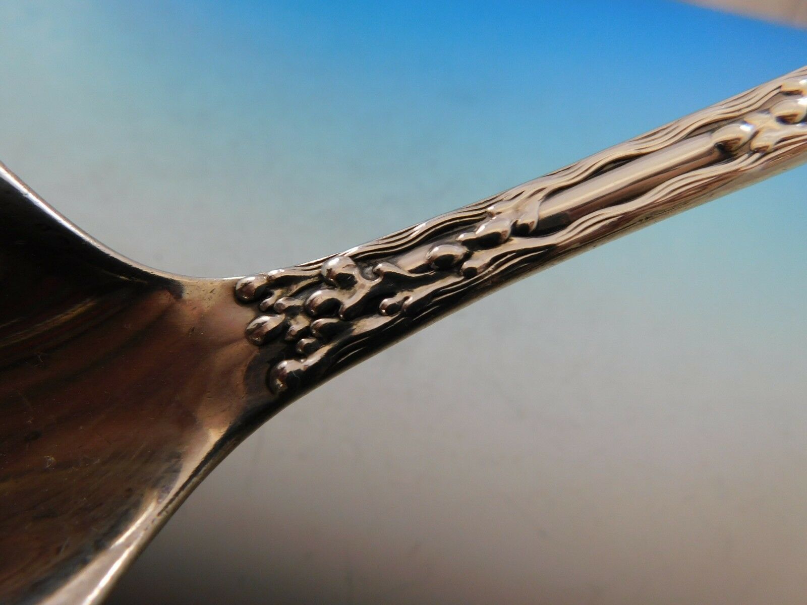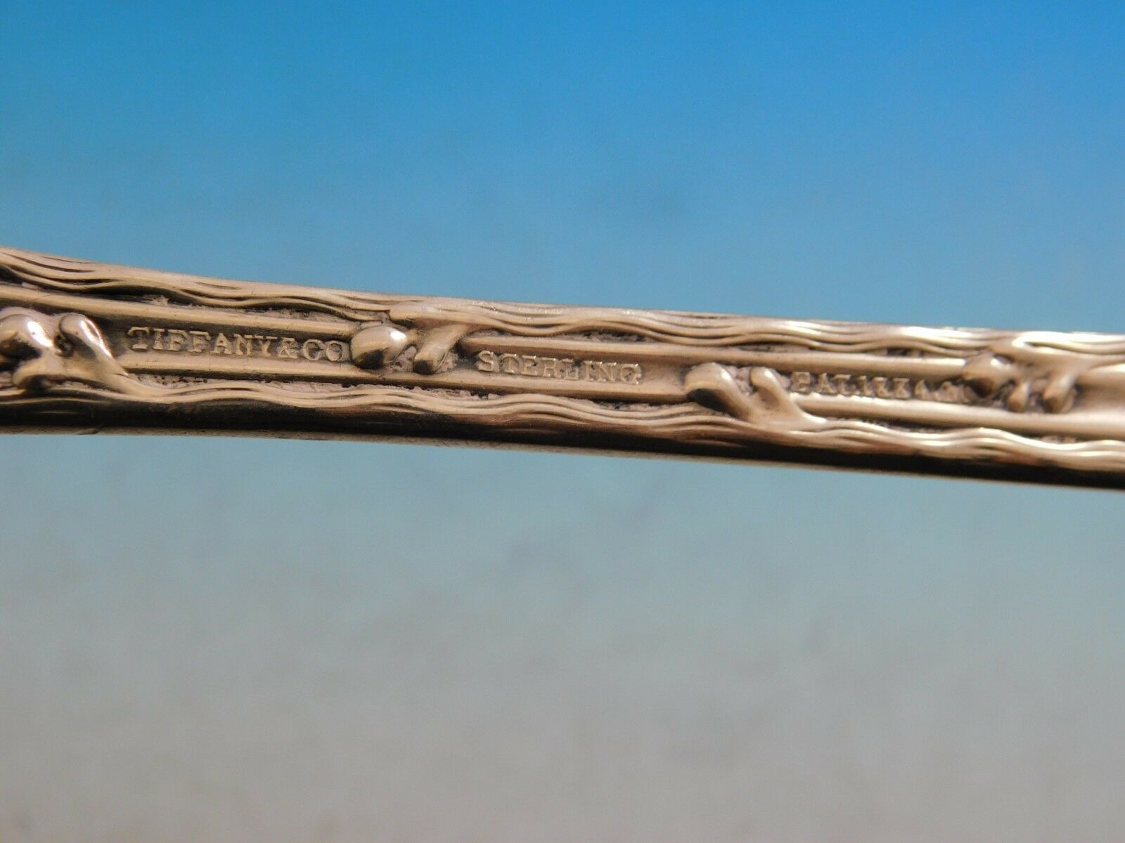 Stunning sterling silver Soup Ladle measuring 11 1/2" in the pattern Wave Edge by Tiffany. This piece features a stunning marine motif that flows down the handle and meets the beautifully fluted and designed serving bowl. It is monogrammed (see photo) and is in excellent condition.
