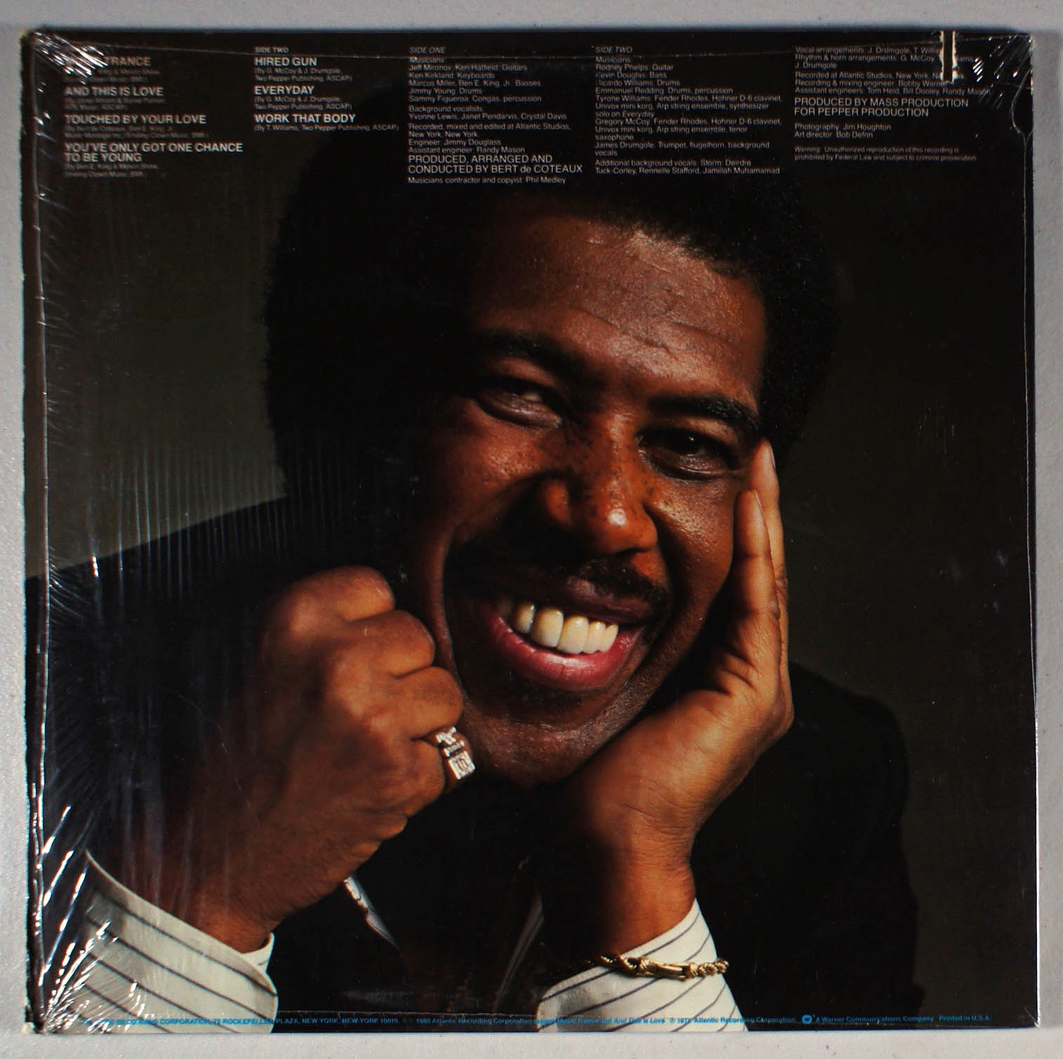 Still in ORIGINAL SHRINK-WRAP (opened), with HYPE-STICKER. Vinyl plays nicely (play-graded). Cover looks great; a couple creases near edges; no scuffing (front/back). Inner-sleeve is original (brown with Atlantic logo). Spine is easy-to-read with mild-wear near top where shrink has torn. Little shelf-wear along top/bottom-edge; wear to corners. Opening shows signs of use. (Notch in top-left.)