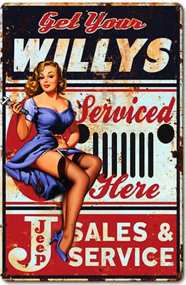 Get Your Willy's Serviced Here Vintage Metal Sign