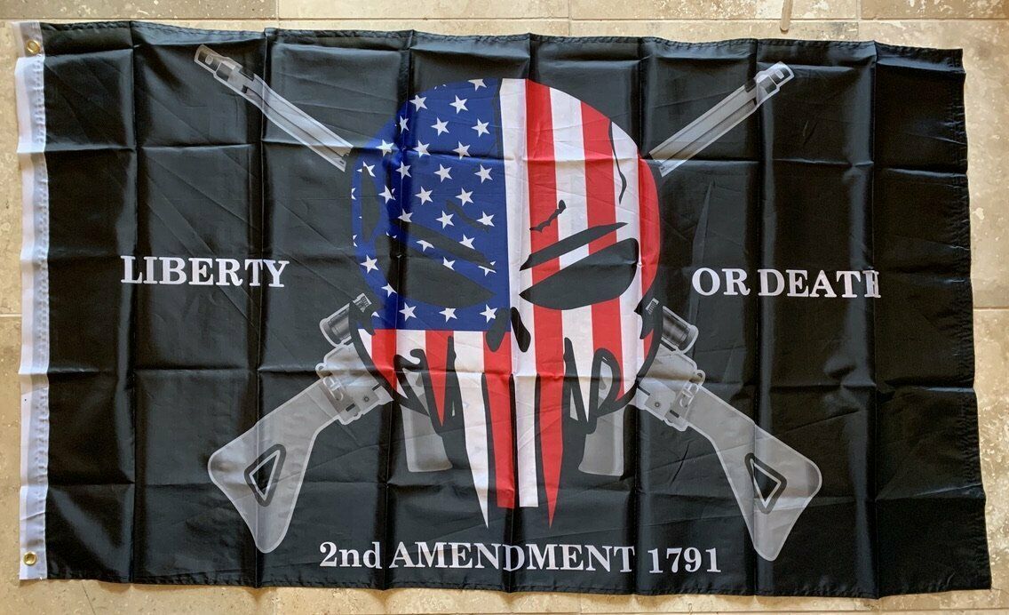 Liberty Or Death 2nd Amendment 1791 Punisher Flag 3'X5'' Rough Tex 68D Nylon