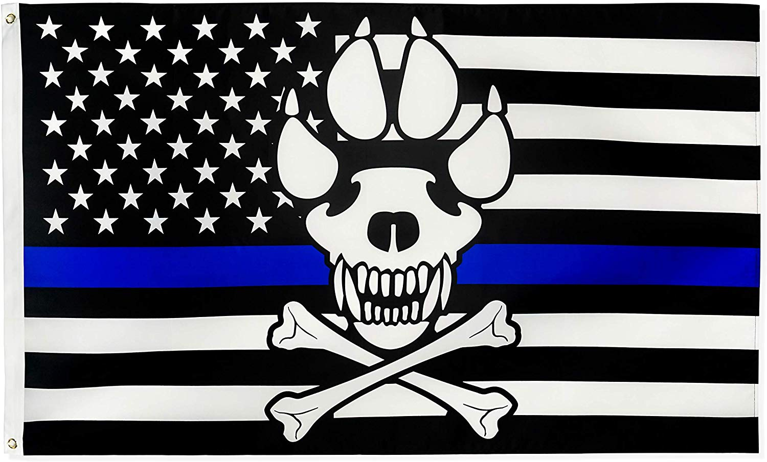 POLICE MEMORIAL K9 DOG SKULL & PAW BLUE LIVES MATTER USA FLAG Rough Tex® 100D