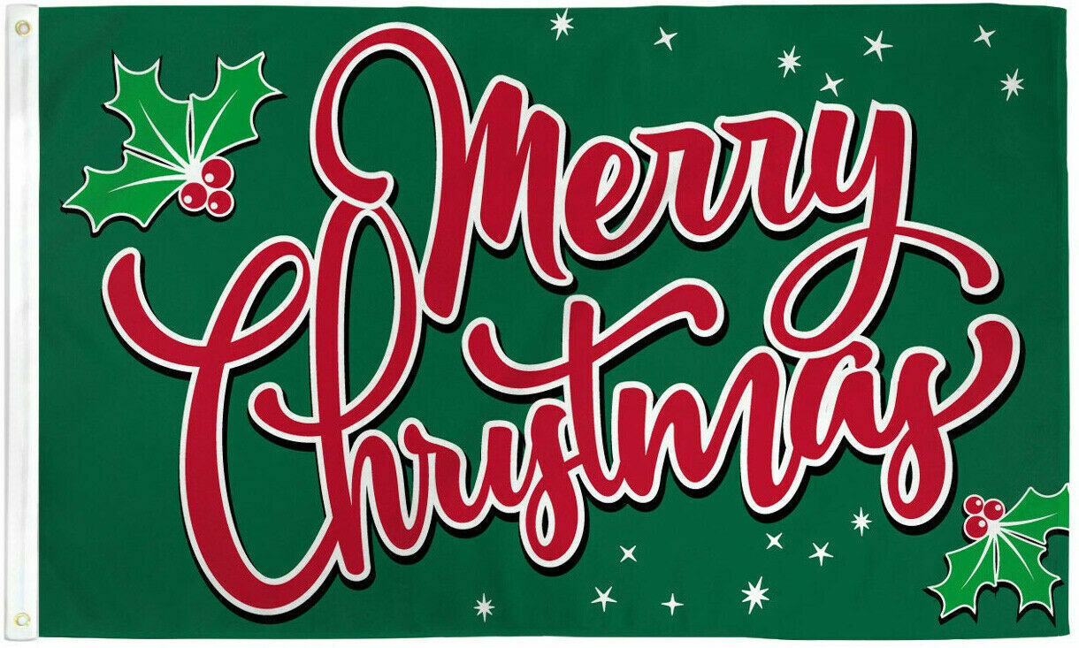 Merry Christmas Green Holly Holiday Season Winter 3X5 Flag Rough Tex 68D Nylon