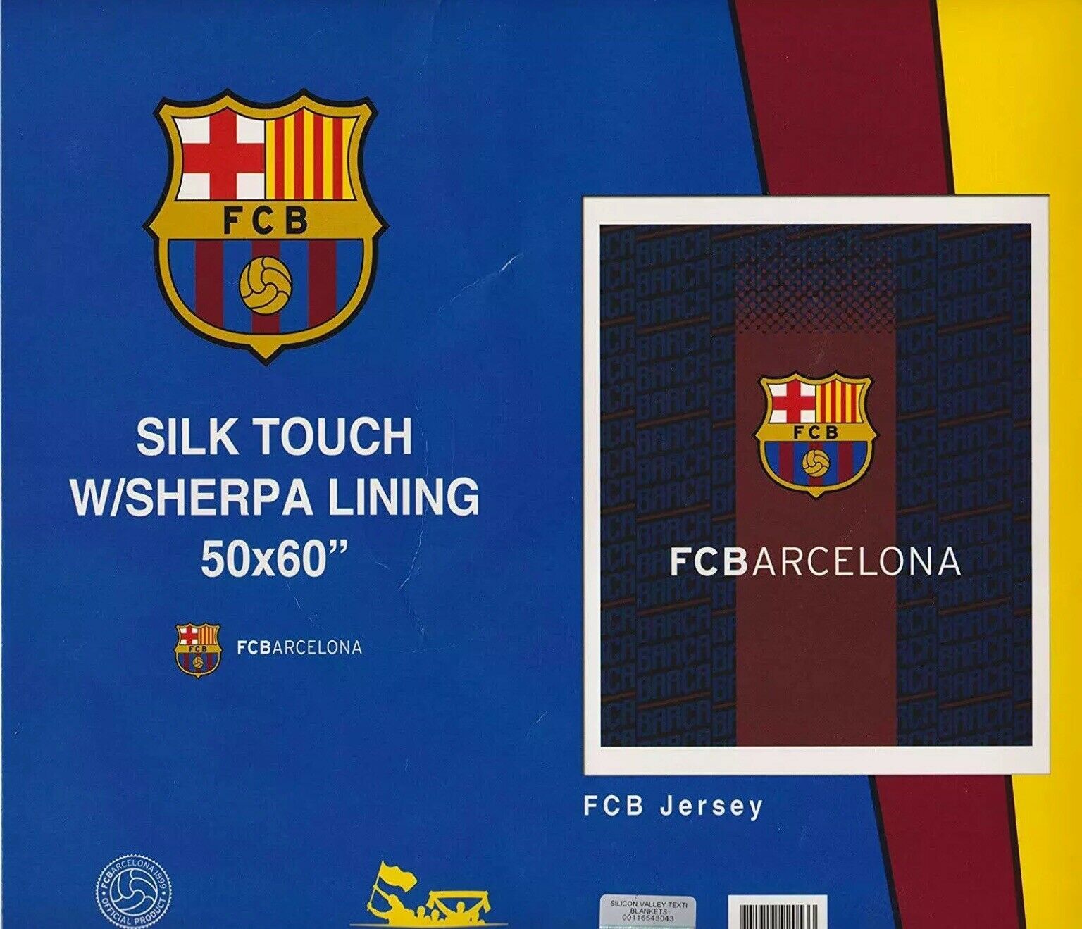 FC BARCELONA ORIGINAL LICENSED SHERPA LINING THROW BLANKET WITH SHERPA 50”x60”