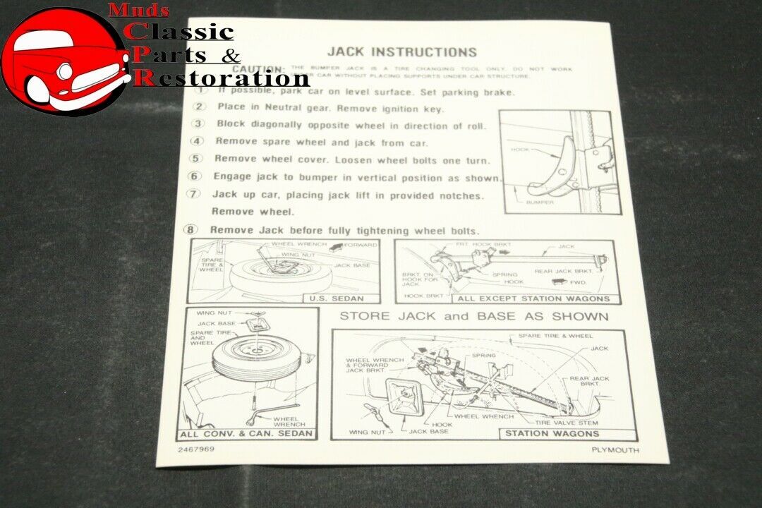 1965 Plymouth Fury Jack Instructions Decal (New)