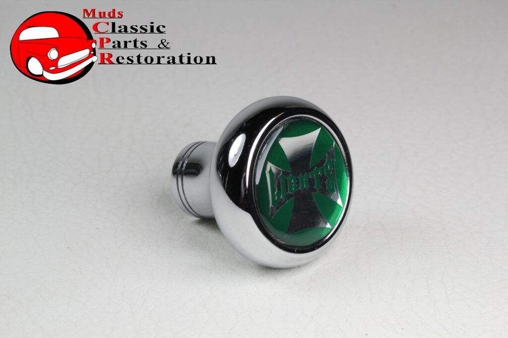 Maltese Iron Cross Deluxe Lights Dash Knob Truck Hot Rat Street Rod Glossy Green