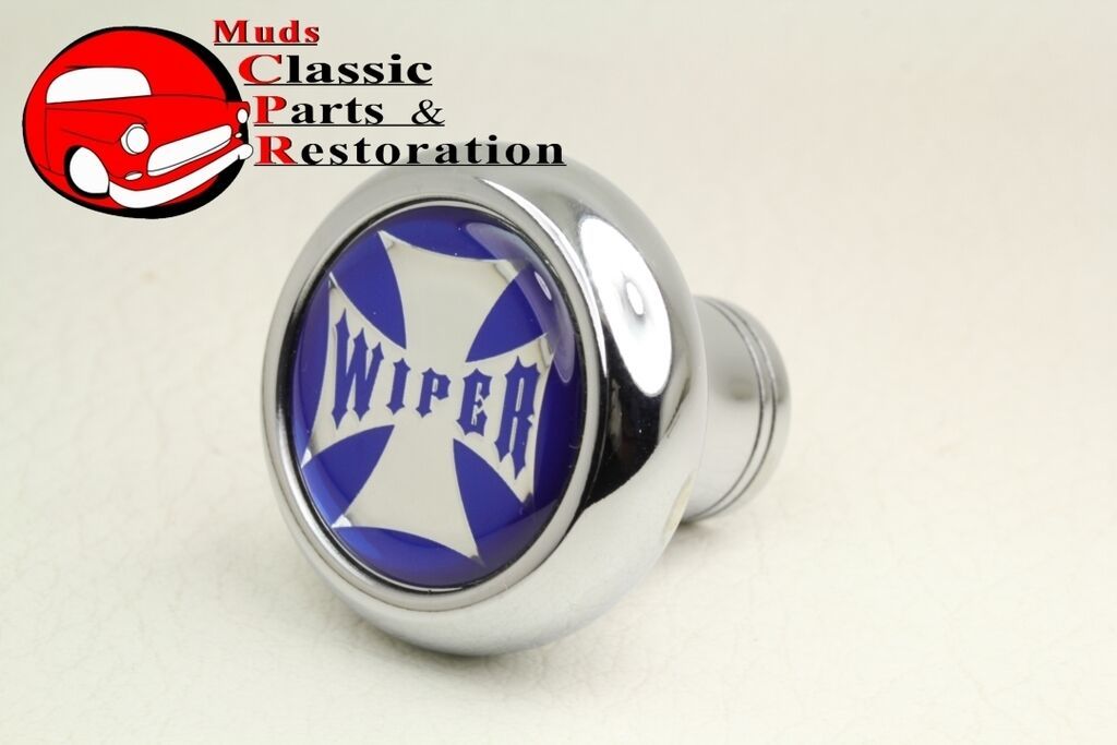 Maltese Iron Cross Deluxe Wiper Dash Knob Truck Hot Rat Street Rod Glossy Blue