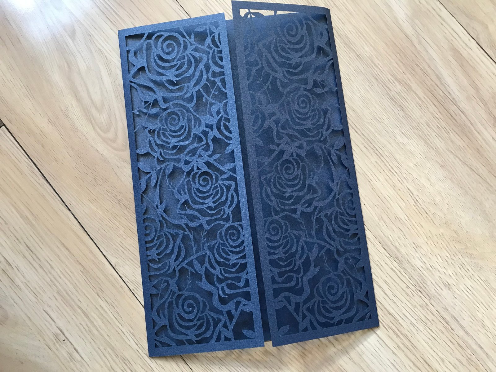 pearl paper Navy Blue color,Only 50pieces invitation cards is US$60.4 Free Shipping,not include envelopes and insert cards;if you would like to have envelopes and insert cards with printing,ribbon etc special requirements,please contact us first,thank you so much;We will service for you!