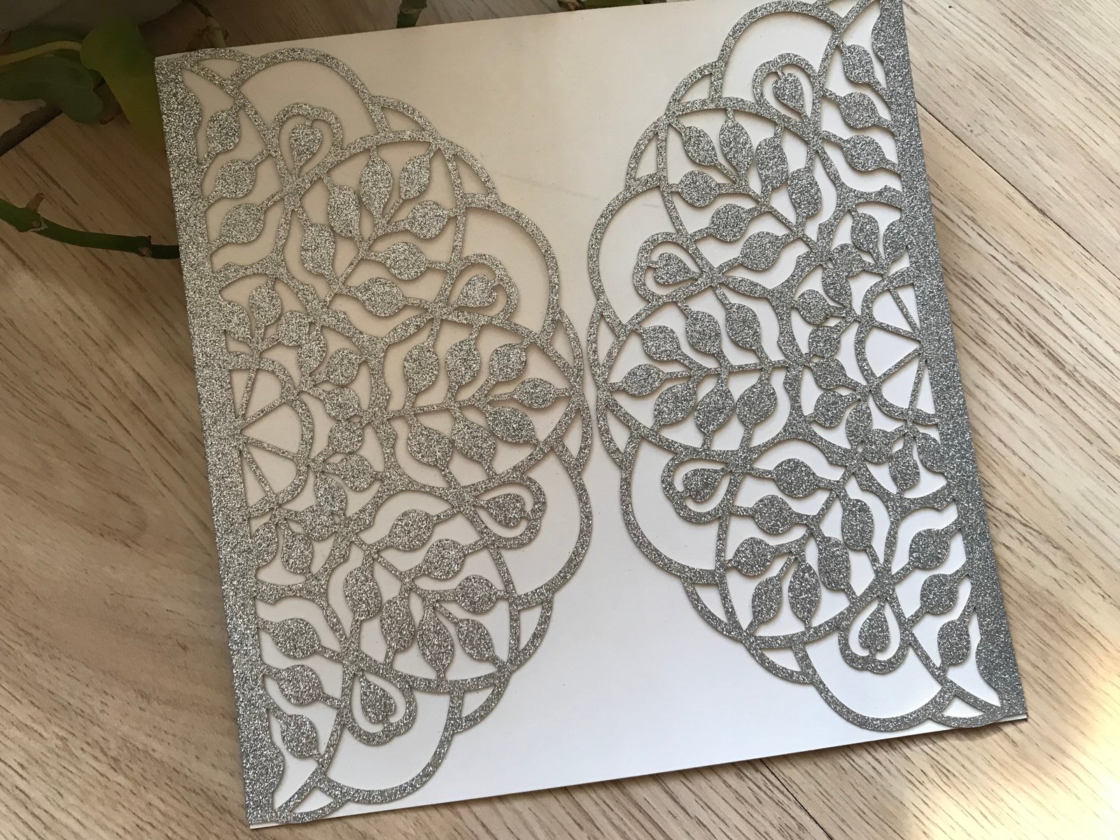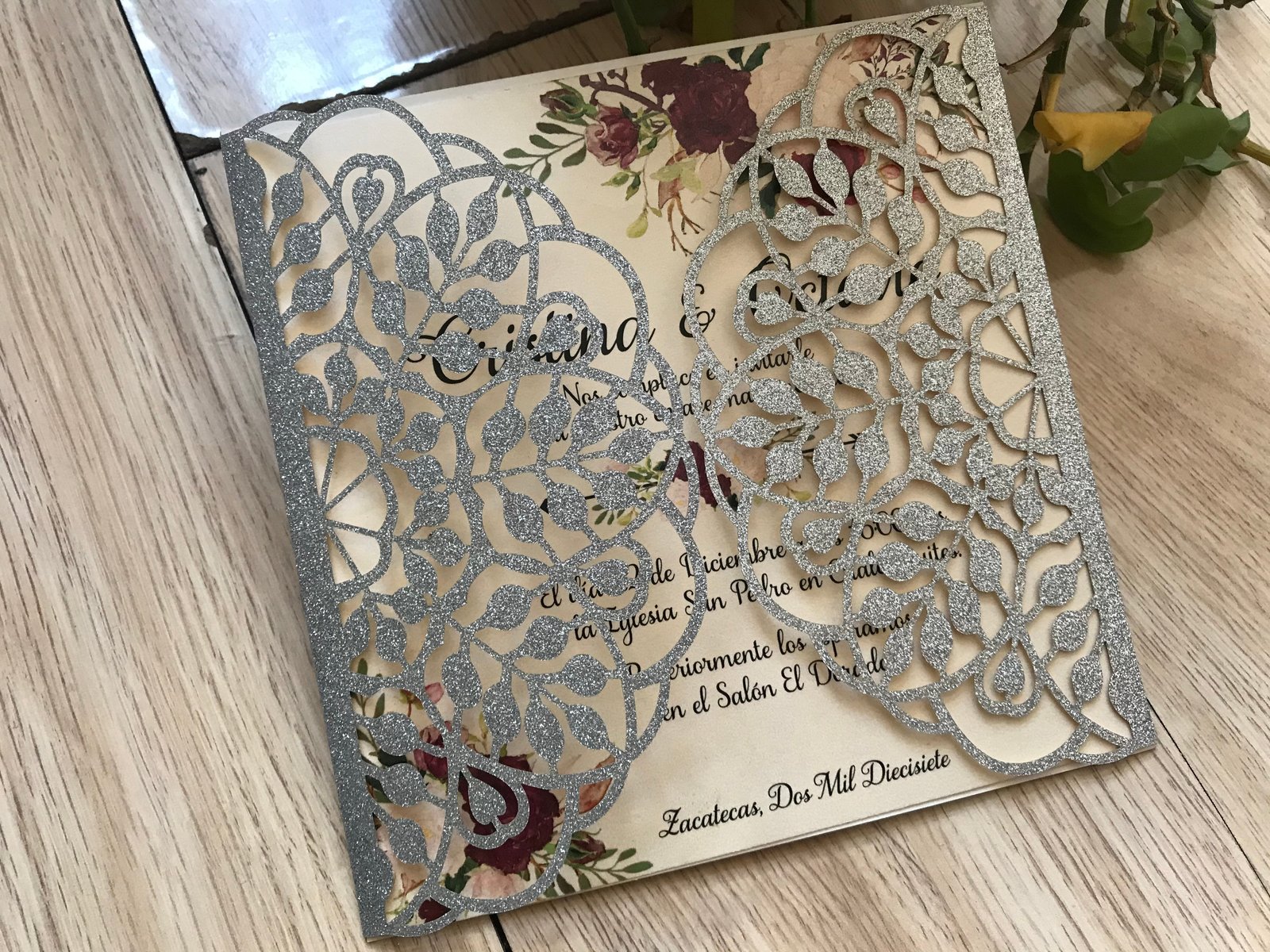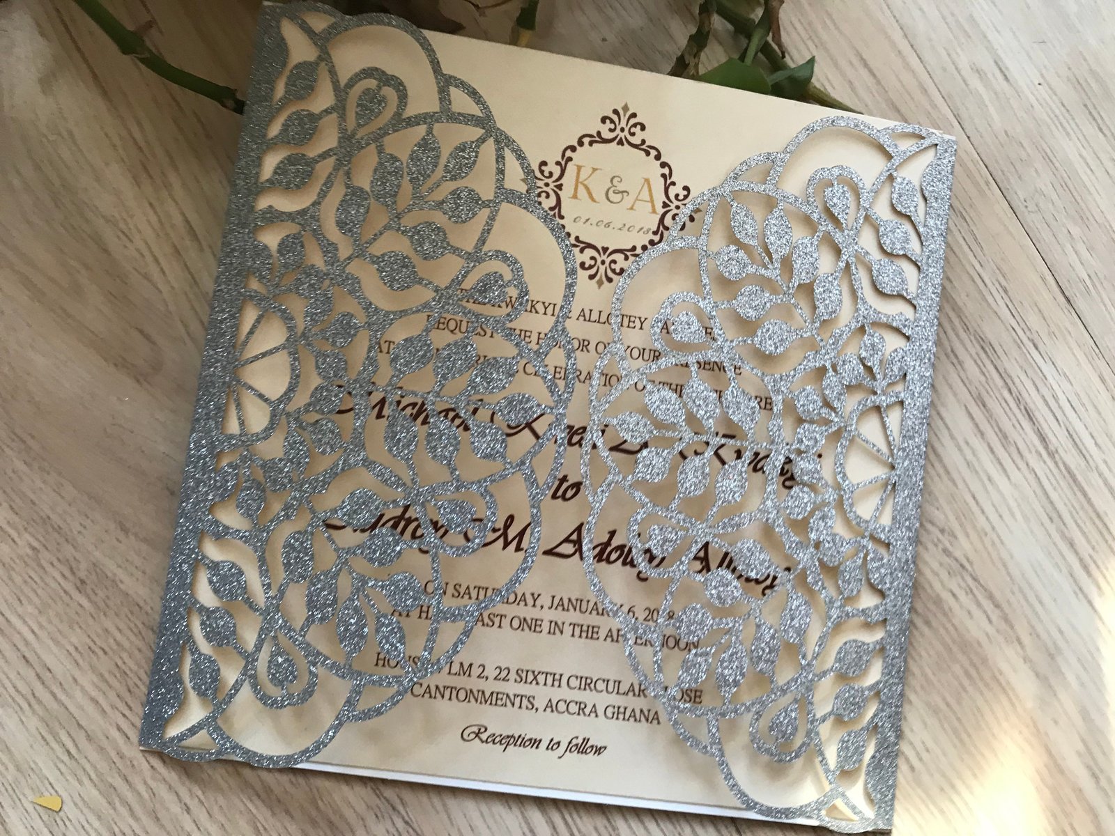 50pcs Glitter Silver Wedding Invitations,Laser Cut Invitations Cards,Laser Cut Wedding Cards,Invitations Cards