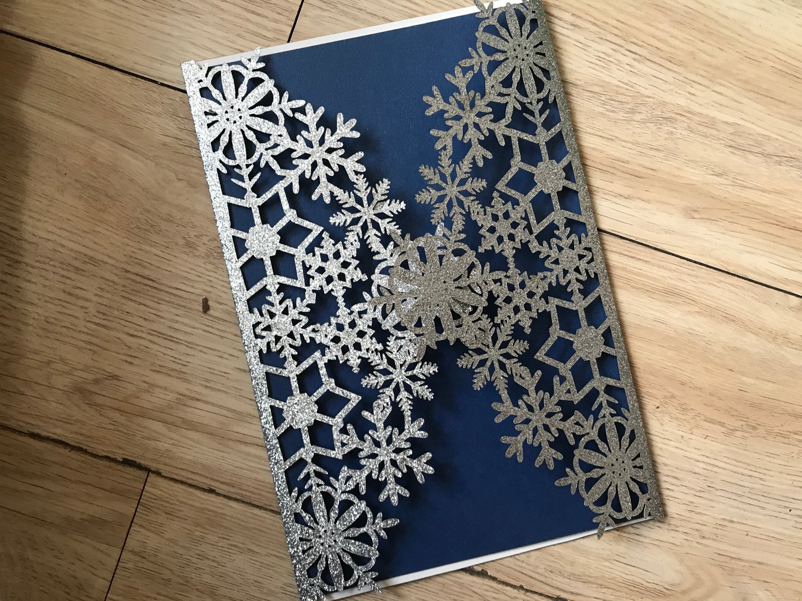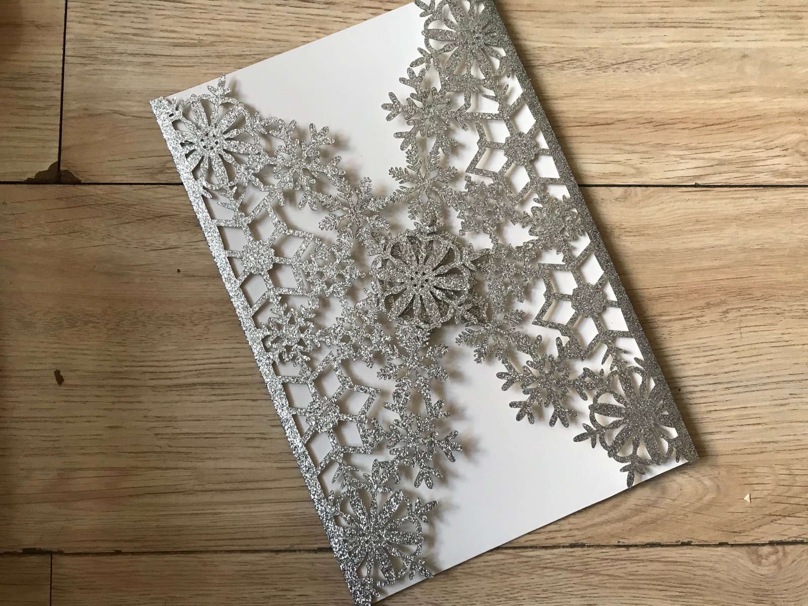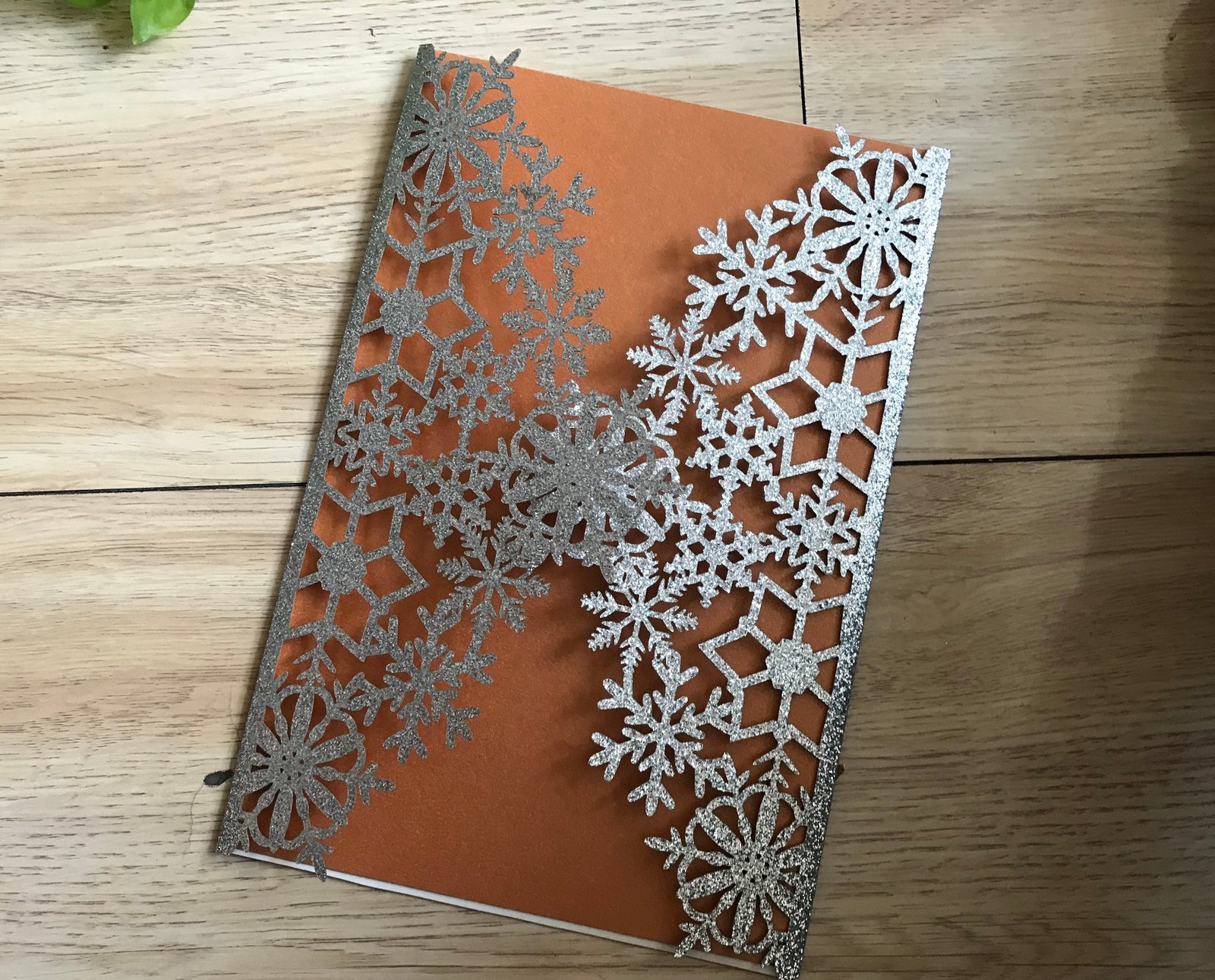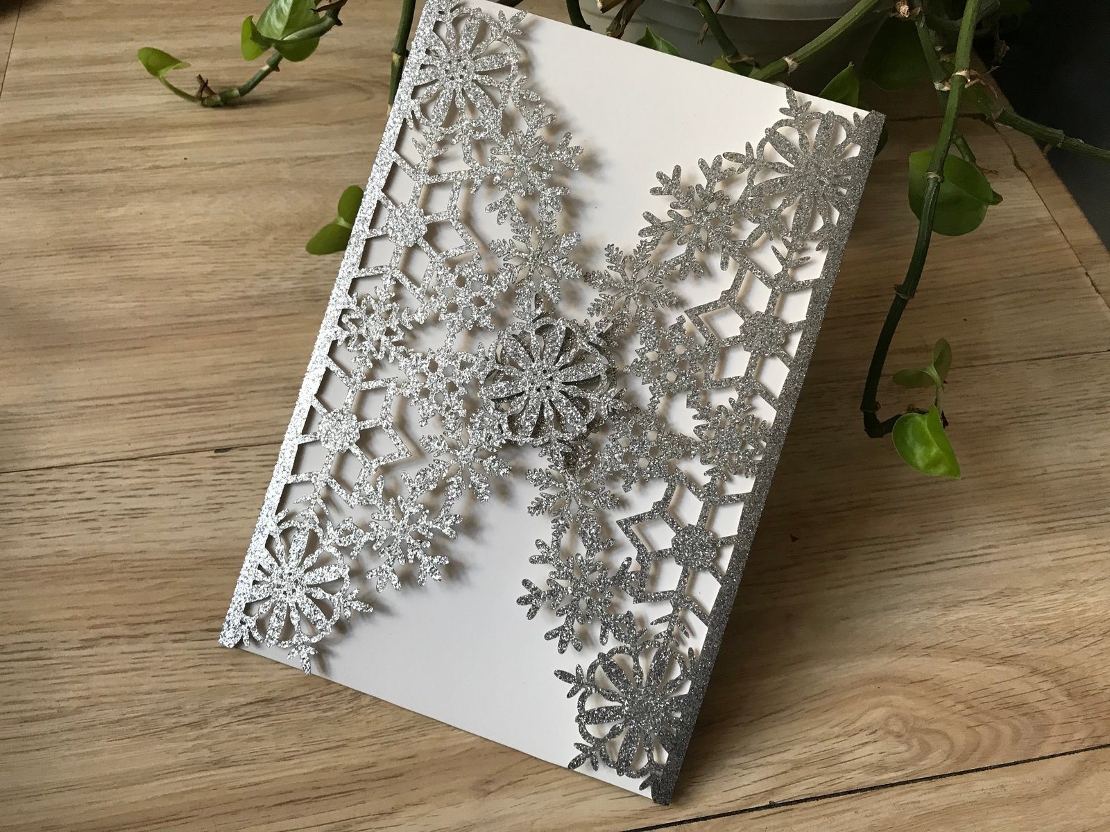 50pcs Glitter Silver Snowflake Laser Cut Wedding Invitations,Laser Cut Invitations Cards,Laser Cut Wedding Cards