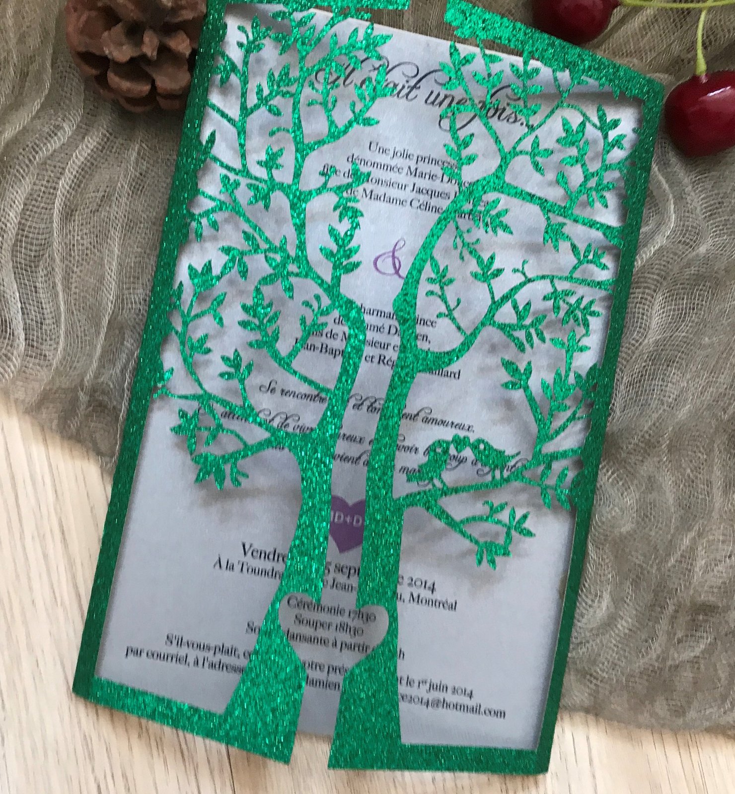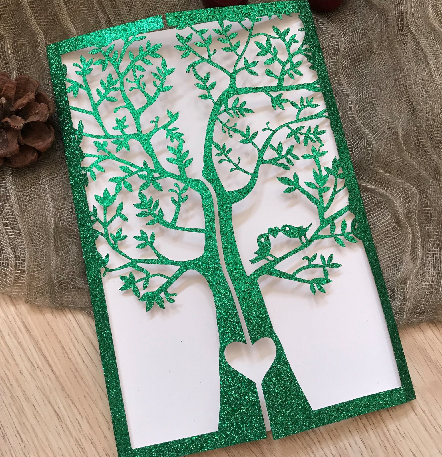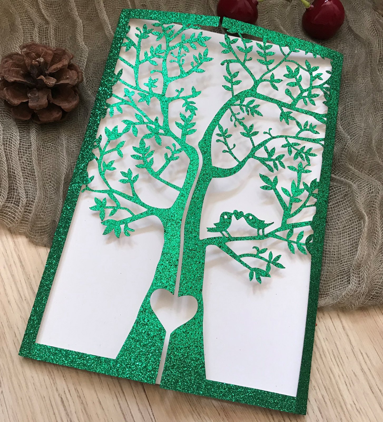 50pcs Glitter Green Tree Birthday Invitation Cards,laser cut wedding Cards,Bridal Shower Party Invitations