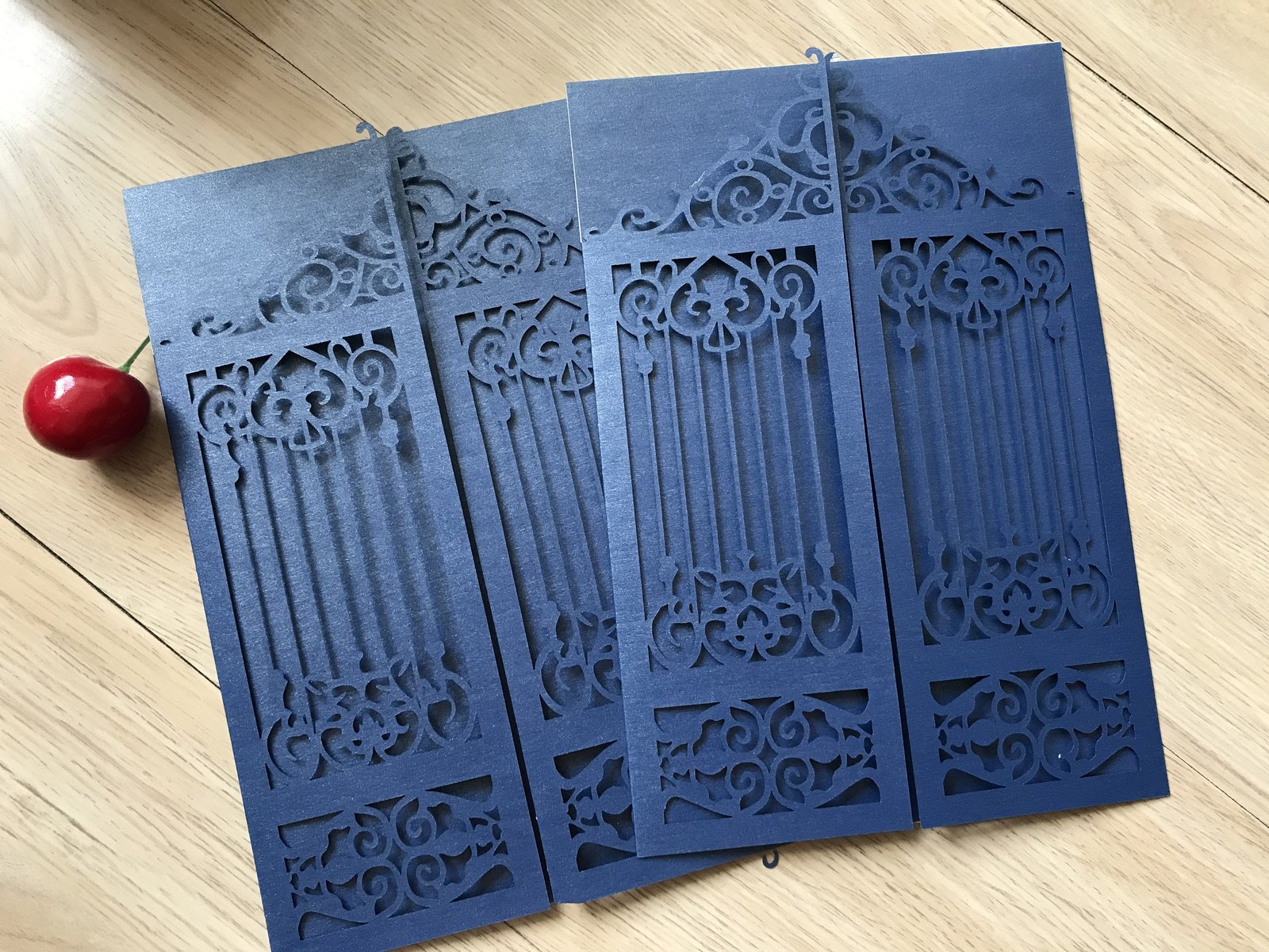 50pcs Gate Navy Blue laser cut invitations cards,laser cut wedding invite cards