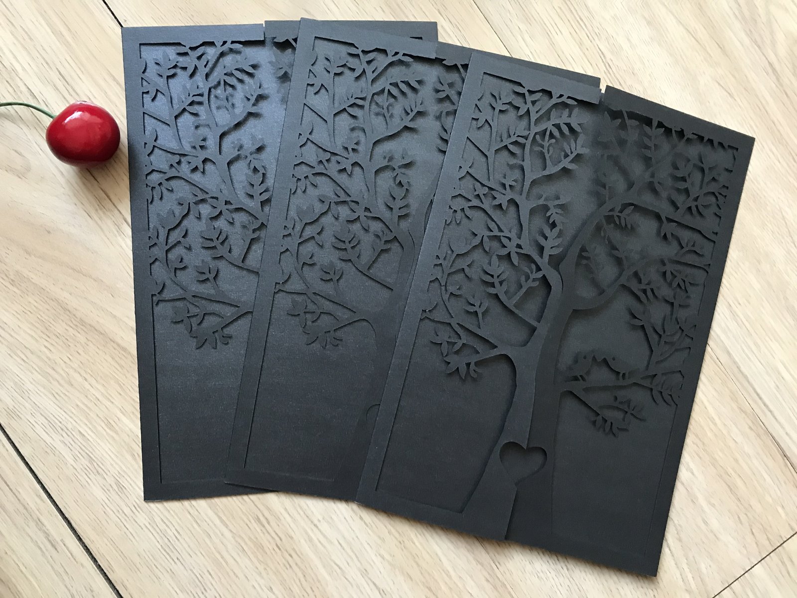 50pcs Pearl Black Laser Cut Wedding Invitations Cards,Birthday Invitations cards