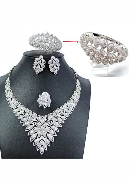 Copper With White Gold Plated Luxury Leaf Jewelry Sets